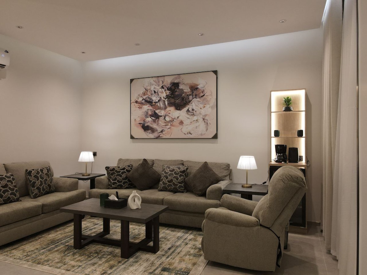 A luxurious apartment that combines luxury and comfort, with a charming view, and a modern design that suits the taste of those looking for calm and sophistication, smart entry, and it has an external courtyard, a private entrance (independent), where it is 17 km away from Abha International Airport, 7 km from Al Rashid Mall, 1.5 km from Asir Hospital, and 3 km from the belt road.