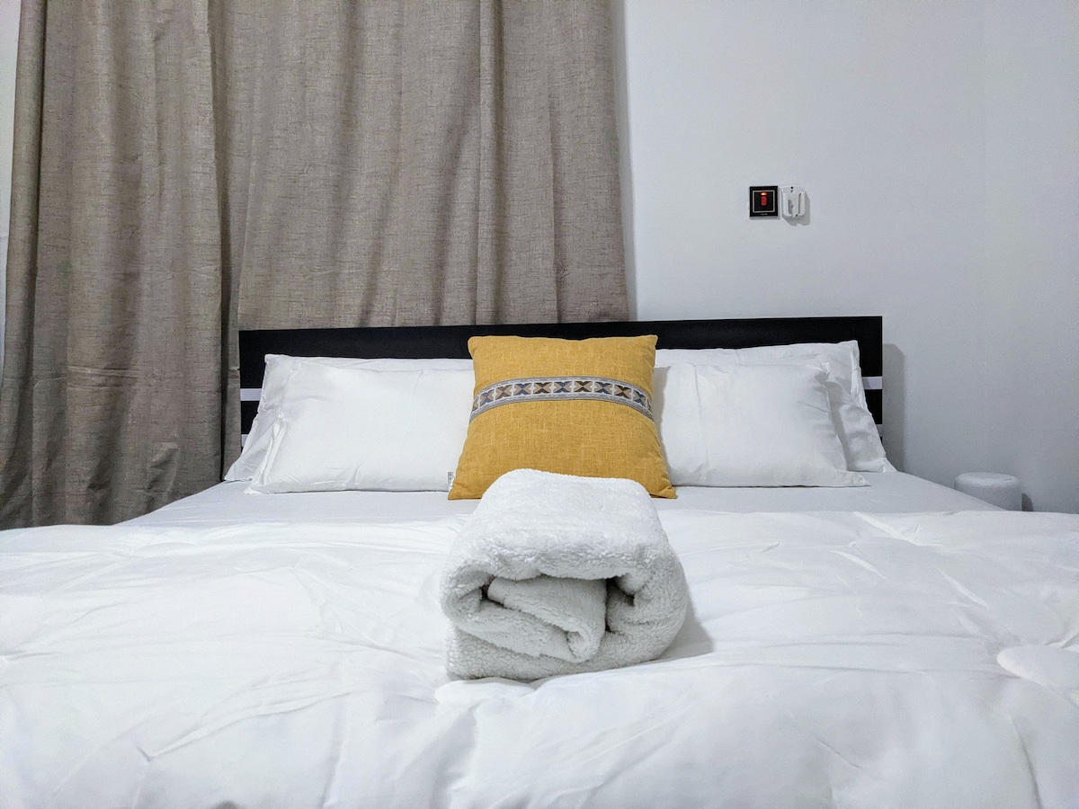 This apartment is located within Mariville Homes Estate, a gated residential community off Spintex Road, near Manet Junction. Conveniently situated just a 15-minute drive from the airport, the property offers a secure and serene environment. The estate is gated and monitored 24/7 by private security, ensuring controlled access. The apartment features two bedrooms and can comfortably accommodate up to four guests. Both bedrooms are en suite and feature king-size beds.