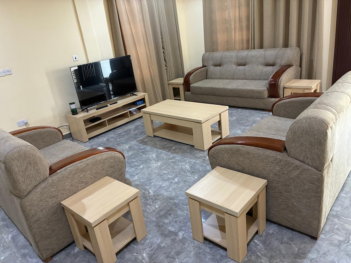Welcome to our spacious two-bedroom haven, where contemporary design meets vibrant African influences, creating a cozy and welcoming modern atmosphere. Perfect for families or small groups. Conveniently located, you are only: 5 min drive from KNUST 12 min drive from Kumasi International Airport 12 min drive from Kumasi City Mall 15 min drive from Adum 20 min drive from Rattray Park