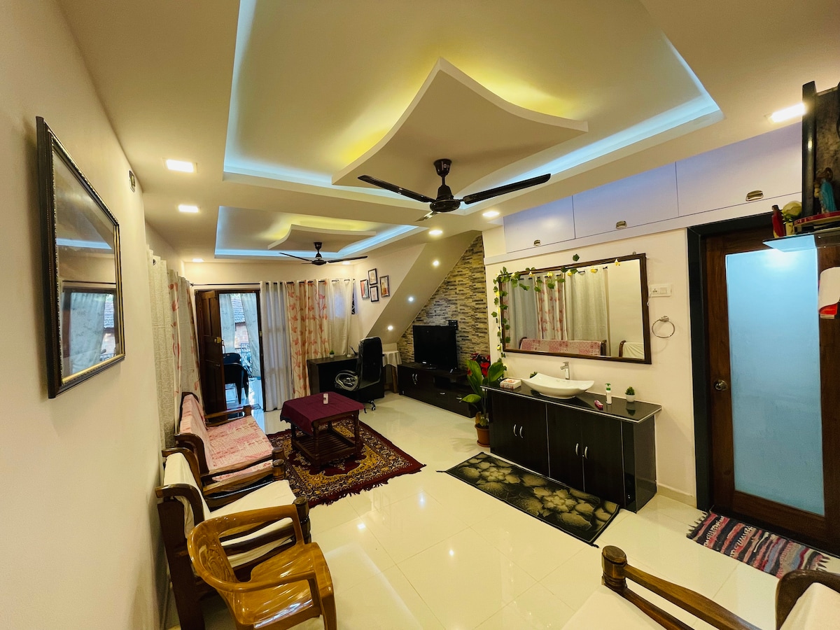 Cozy Hideaway in North Goa – Beach, Balconies & local charm!!! Imagine waking up to the soft sounds of nature, sipping your morning coffee with lush greenery and a hill in view. Welcome to your dreamy escape in Goa – where cozy comfort meets the magic of tropical living. Spacious and airy, this home, will give you the opportunity to recharge, reconnect, and soak in the charm of Goa- ideal for vacations, staycations, or workstations. Welcome to Gezellig - 2nd unit of Mogachestays.goa