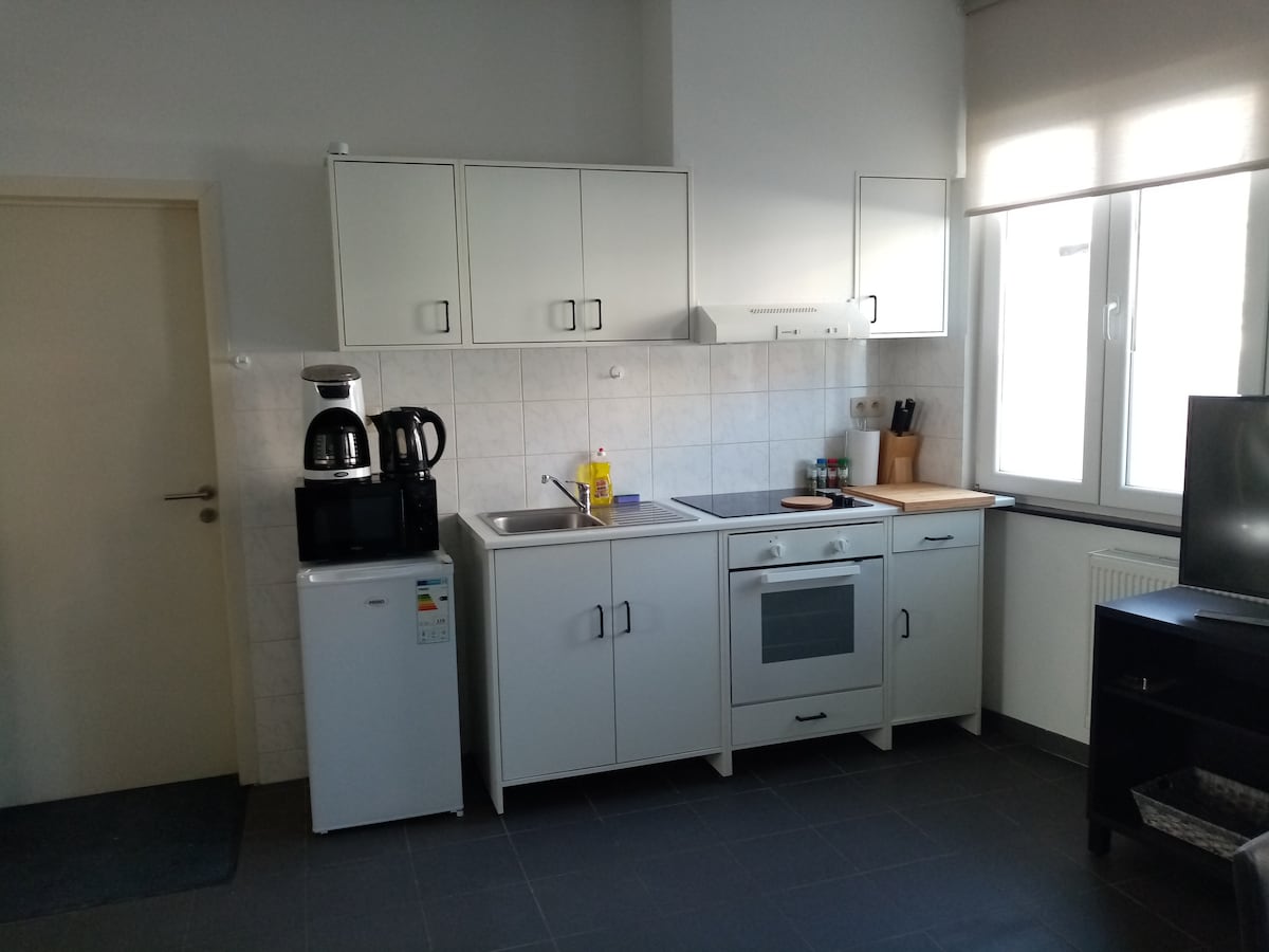Hello! Enjoy a peaceful, well-equipped apartment perfect for remote work or stays near Brussels, Flemish Brabant and its surroundings. Includes a bright living room with desk, full kitchen, cozy bedroom, and bathroom. Optional pc screens & docking stations (upon request) Near to park, Atomium, pool, shops, and transit in 5 min. Located on 3rd floor (no elevator). Long stays welcome. Possibility of a discount for bookings of 3 days or more, upon request.