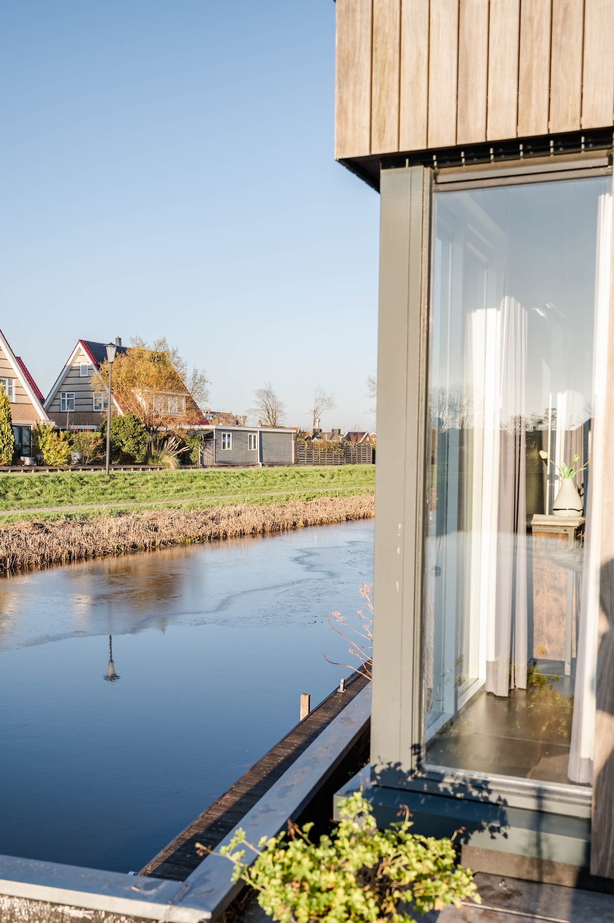 Discover the unique beauty of Holland from our enchanting water villa, the ‘Zwarte Zwaan.’ Located in one of the most picturesque historic spots, this architecturally designed, spacious and exclusive watervilla offers an unforgettable vacation experience in a breathtaking setting. Step into a world of scenic Dutch waterside landscapes, just a 25-minute drive from Amsterdam, the beach or IJsselmeer. Life here embraces the seasons; summer swim, autumn walks, winter ice skating, lambs in spring.