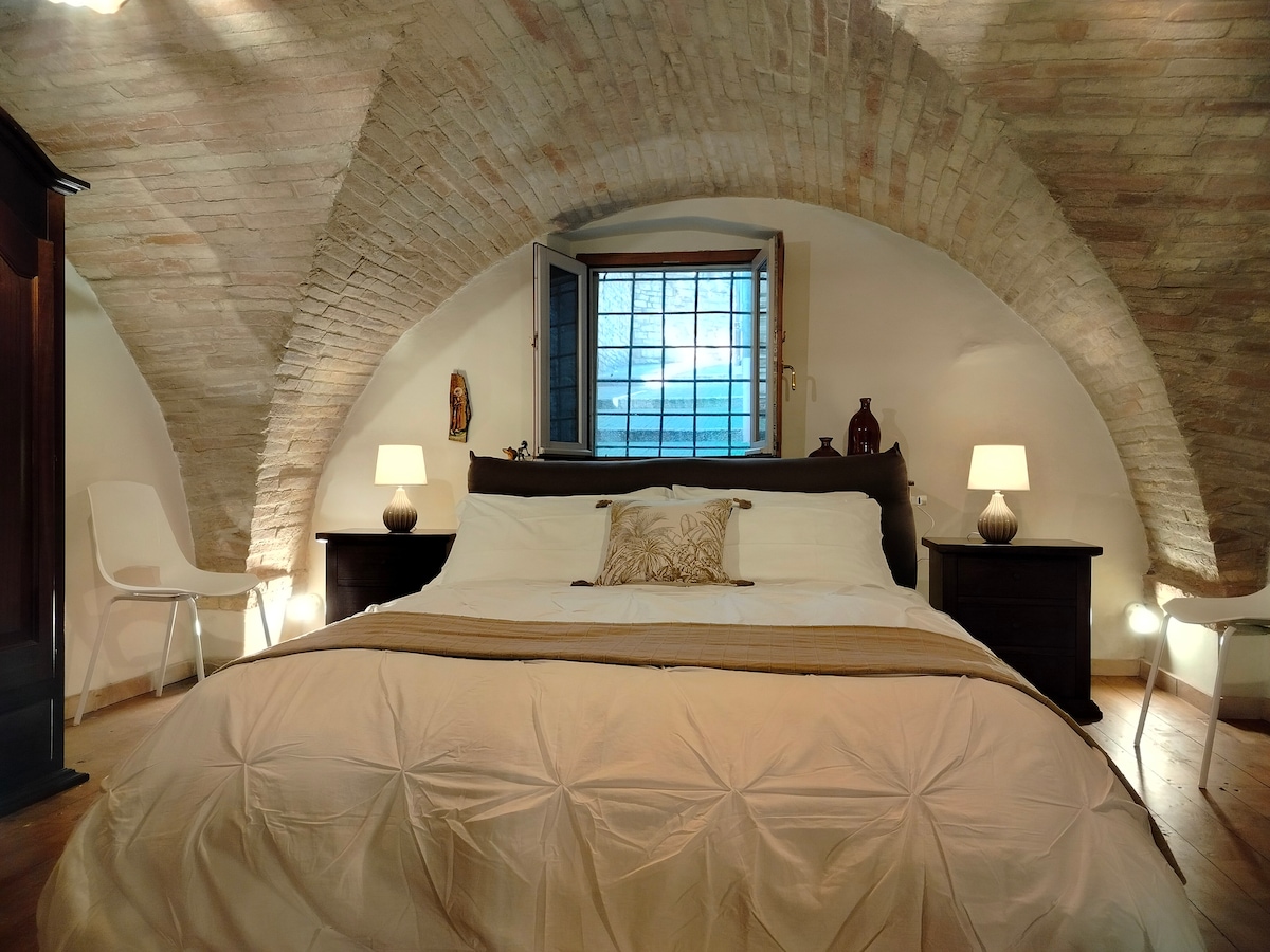 Assisi AD Apartments – Sorella Luna Luxury Home is a charming retreat in the medieval heart of Assisi, located on Via Fontebella, just steps from the Basilica of St. Francis. An authentic historic apartment enhanced by a high-end renovation designed by architect Gianluca Falcinelli. Fine materials, warm atmospheres and modern comforts create an intimate and refined stay. Special agreement with a covered, secure parking facility just a 5-minute walk away.