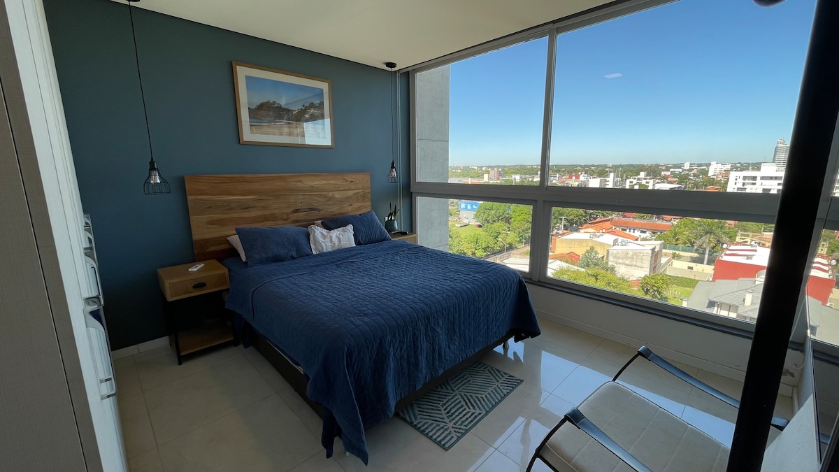 Modern apartment in the heart of Asunción, just 100 meters from the best shopping malls, restaurants, and hotels. Fully equipped, it features a bright living room, modern kitchen, bedroom with a queen-size bed, and a full bathroom. The building offers amazing amenities: gym, game room, semi-Olympic pool, and private parking. Perfect for those seeking comfort, luxury, and an unbeatable location. Book now and enjoy the best of Asunción!