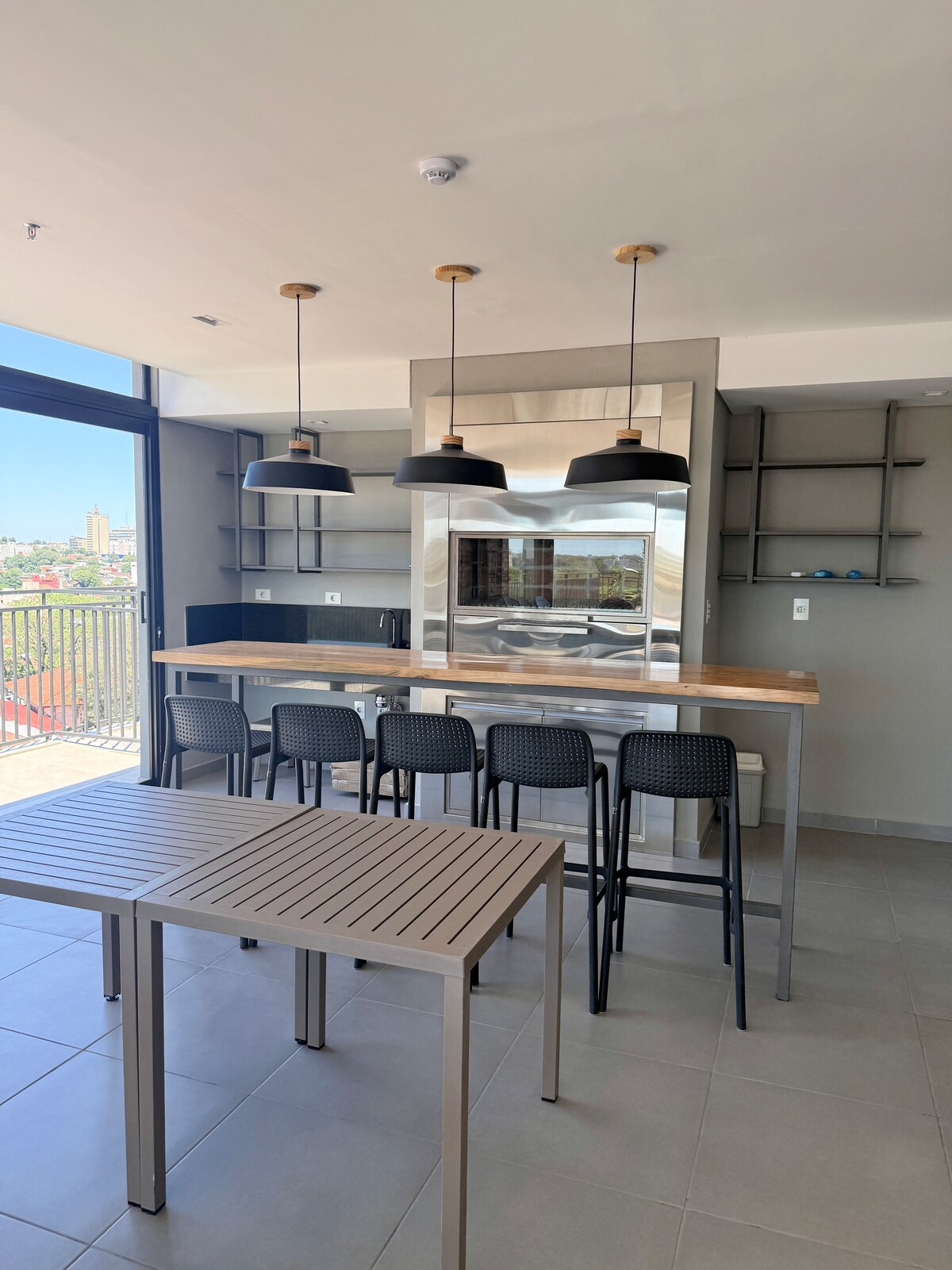 Relax and recharge in this haven of tranquility and elegance. Modern loft in a privileged area a few steps from Asunción's corporate hub and the city's most important shopping malls. It has all the amenities, such as Smart TV, WiFi, bed linens, fully equipped kitchen, large balcony, electronic lock, 24-hour concierge, equipped gym, laundry, terrace with views of Asunción, outdoor grill and air-conditioned living room, swimming pool, business center and much more.