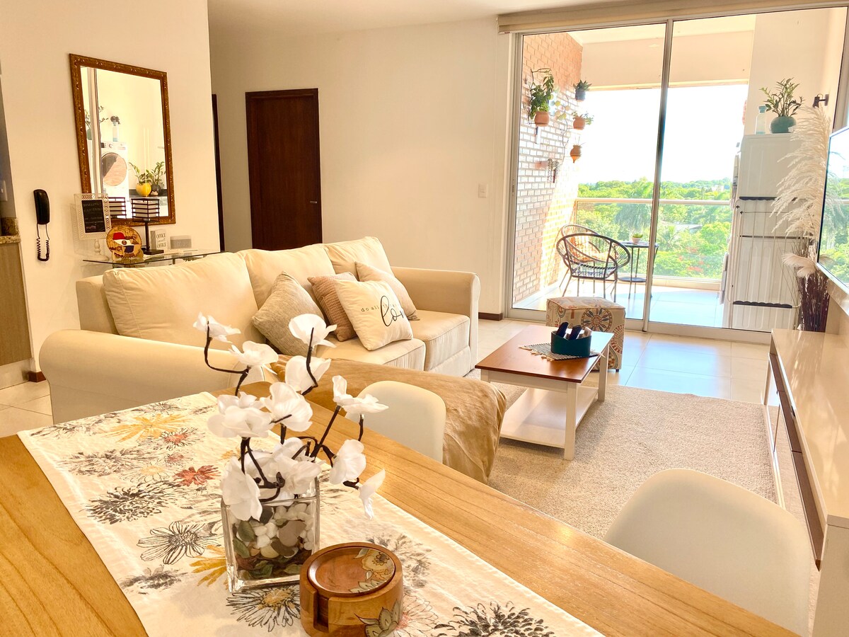 All inclusive! "The best experience you hope to have on your trip" Access with a digital lock / Reception and Security 24/7 On the 6th floor with privileged views since it is located in the Cosmopolitan, residential area and many green spaces for sports, churrasqueria supermarket, food store and imported products, shopping, Private Hospital all from 5 to 10 minutes. Our home is prepared to receive people for short or long stays for work or vacations. The end is to enjoy it!!