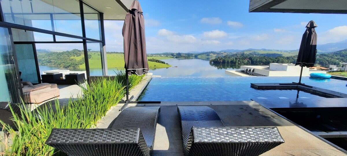 Enjoy total security in a gated community, 60 km from the capital of SP. Beautiful and spacious single-story house in Minas Gerais style, landscaping and leisure area with pool and barbecue, privileged view of the lake. In the common areas of the condominium, there is space for walks in the midst of nature, a playground, an outdoor gym, and the ideal tranquility for children and the elderly. Atibaia is the city of flowers and strawberries, known for the best climate in Brazil and famous for the Pedra Grande Tourist Spot.