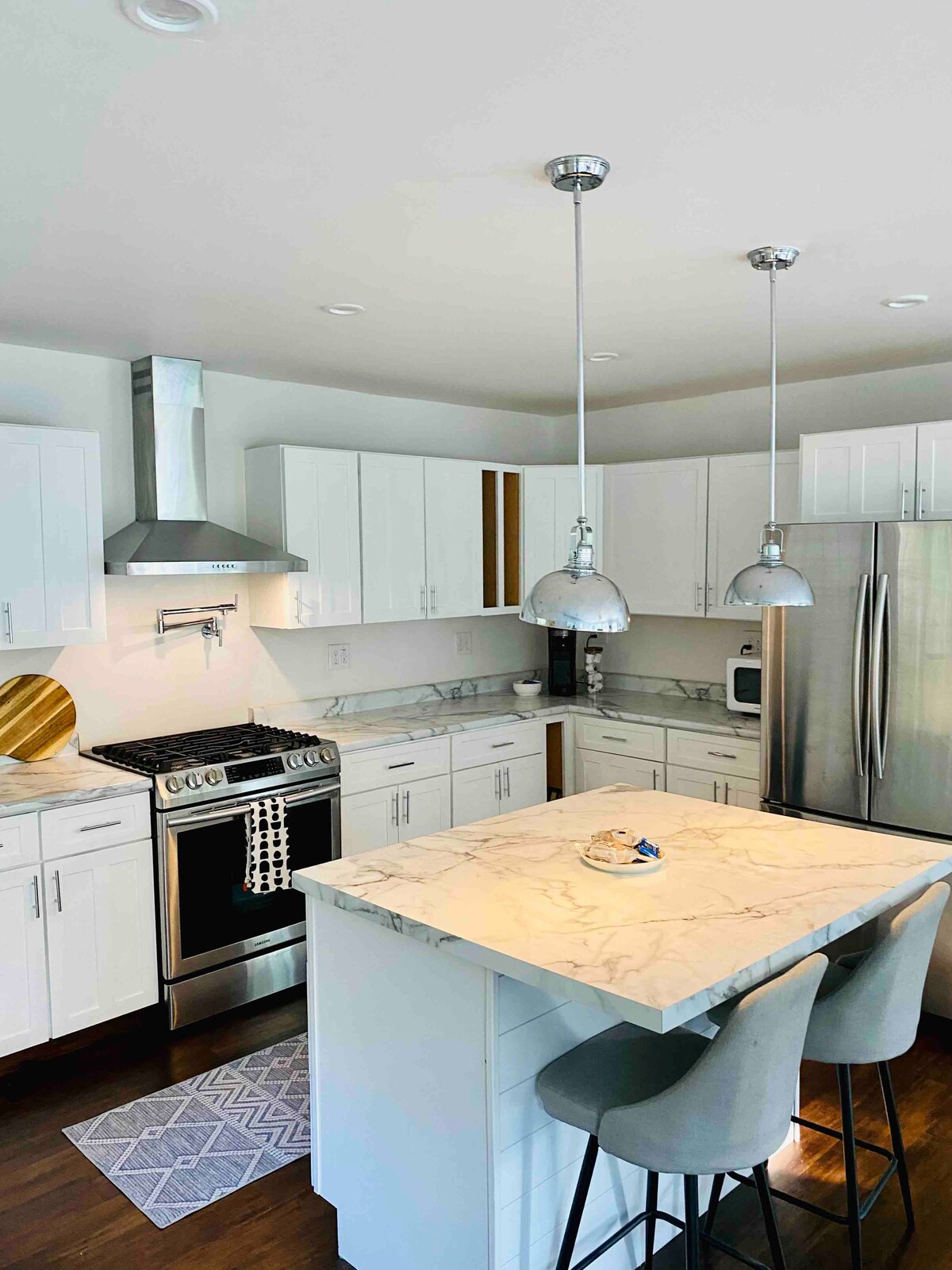 This spacious, renovated house features an open floor plan with modern decor. Two expansive common areas are both equipped with wood burning fireplaces. Chef's kitchen is fully equipped for those looking to eat in. Luxurious master bath with a huge walk-in shower. Enjoy some fresh air on the 2-tiered deck and fenced in yard overlooking a tranquil wooded lot with mature trees. Quiet countryside neighborhood, within 5 minutes of Purdue University.