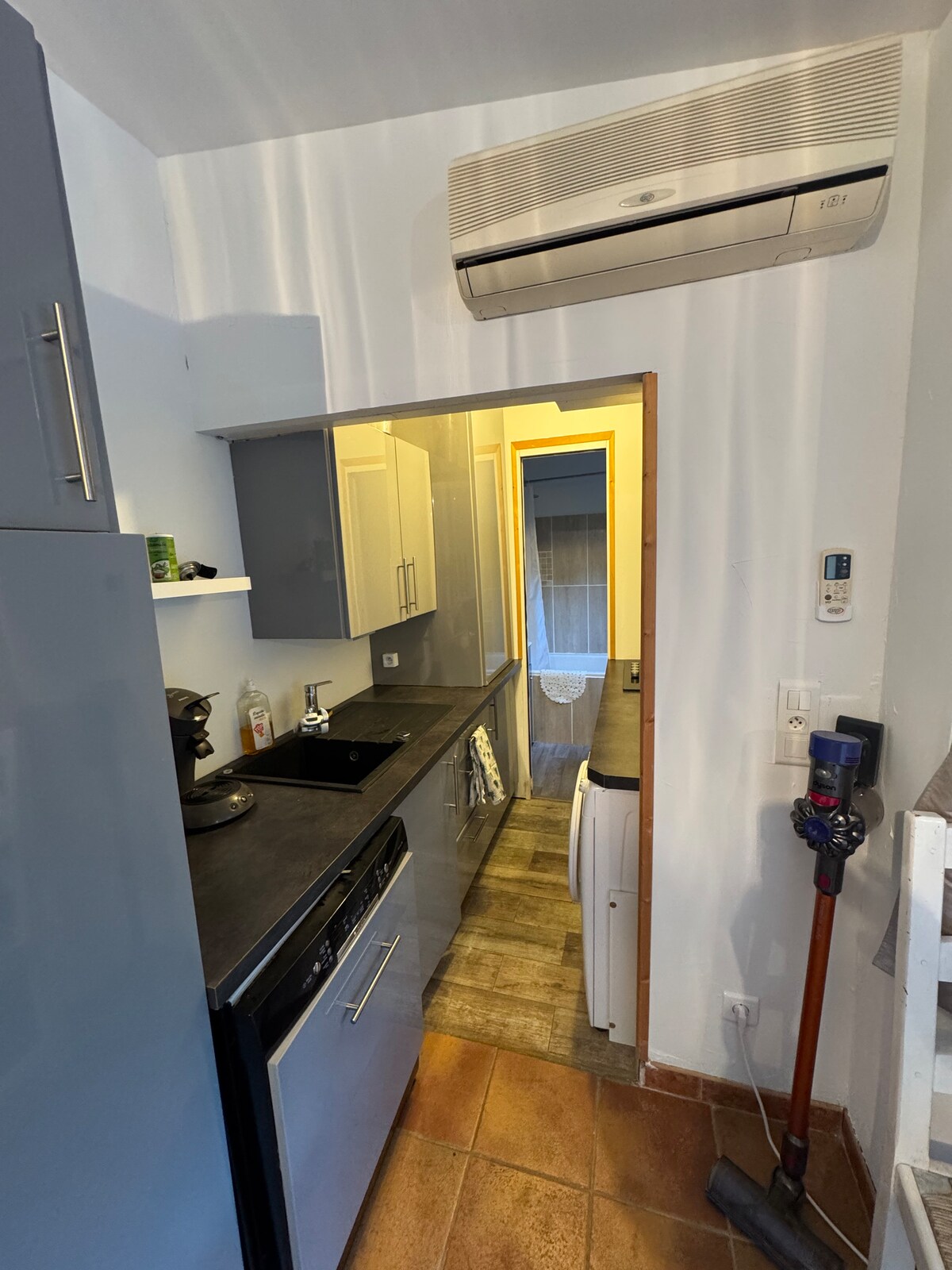 The studio is located on the ground floor of the owners' house, in the very heart of the village. Composed of a living room with a bed, a large wardrobe. A fully equipped kitchen with bar area and a small dining area as well as a bathroom with walk-in shower and toilet. Tastefully furnished and decorated, it's a very quiet cozy little nest! Keep it simple at this peaceful and centrally-located place.