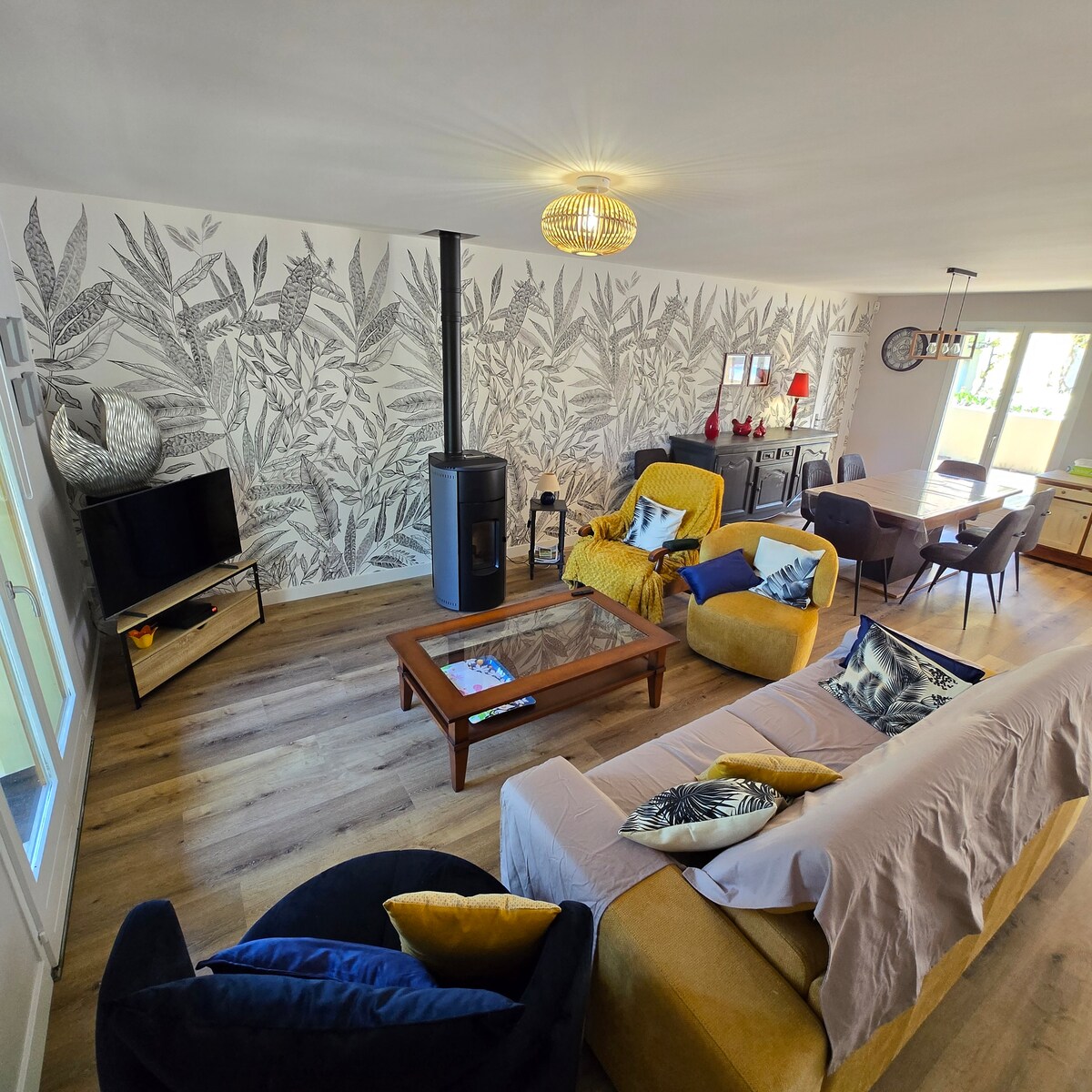 To see all my accommodations, click on my profile! L'Escapade à Lascaux offers you this magnificent T2 duplex in the city center, offering unique views of the square and the tower of the Château de Montignac. Completely renovated, equipped kitchen, air conditioning, free WIFI. Living room: 140 sofa bed with real mattress 18 cm thick, smart TV. Shower room: spacious, large shower, double stone basin and WC. Large bedroom in the attic, King Size bed of 180, Zen decoration.
