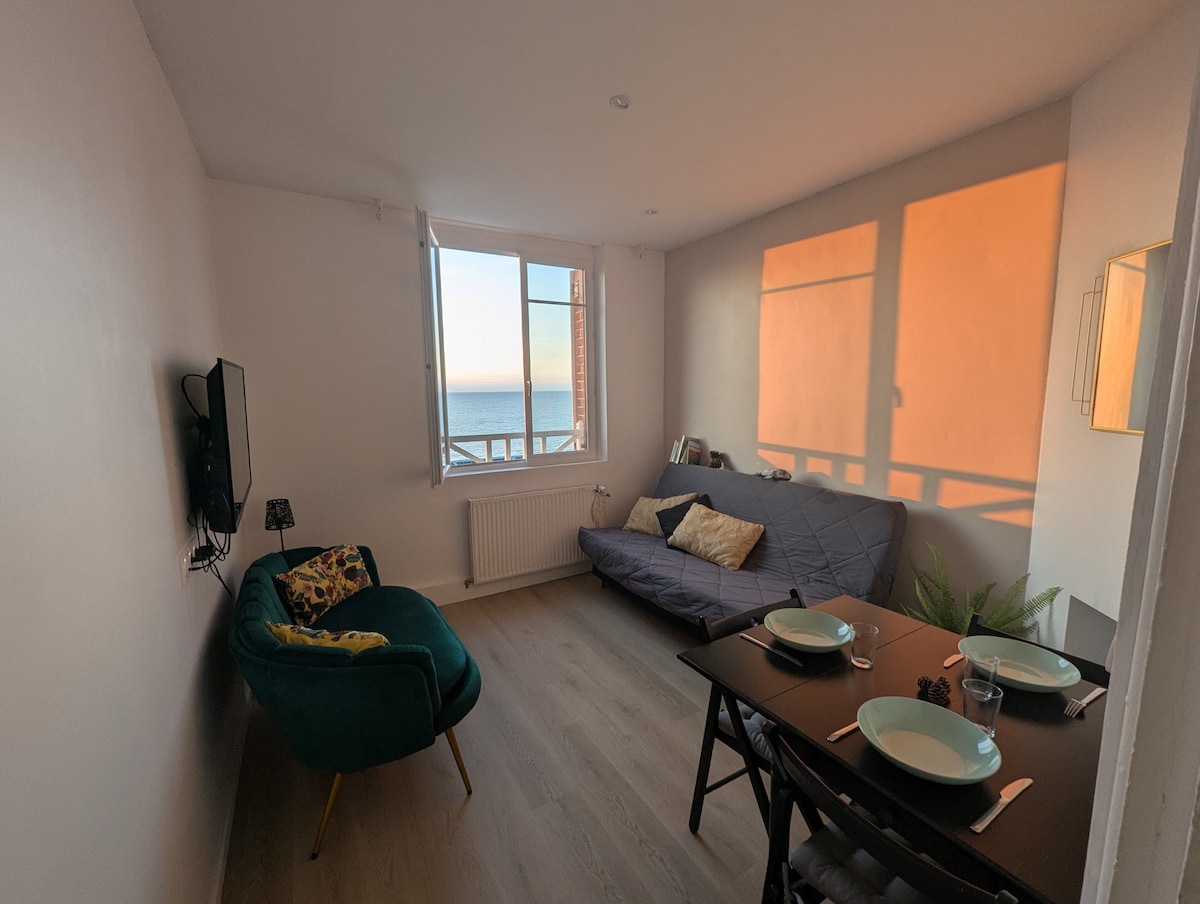 Appartement entièrement équipé, situé au 1er étage d'une jolie villa surplombant la mer... vous offrira un spectacle de couleurs à toute heure du séjour mais aussi de la chambre. Dépaysement assuré!!!Idéalement situé entre Mers-Le Tréport et Saint Valéry- Le Crotoy, il vous permettra de découvrir notre magnifique région pleine de nature et de saveurs. C'est l'endroit rêvé pour vous détendre en famille ou amis.