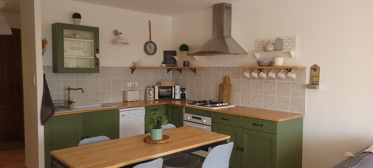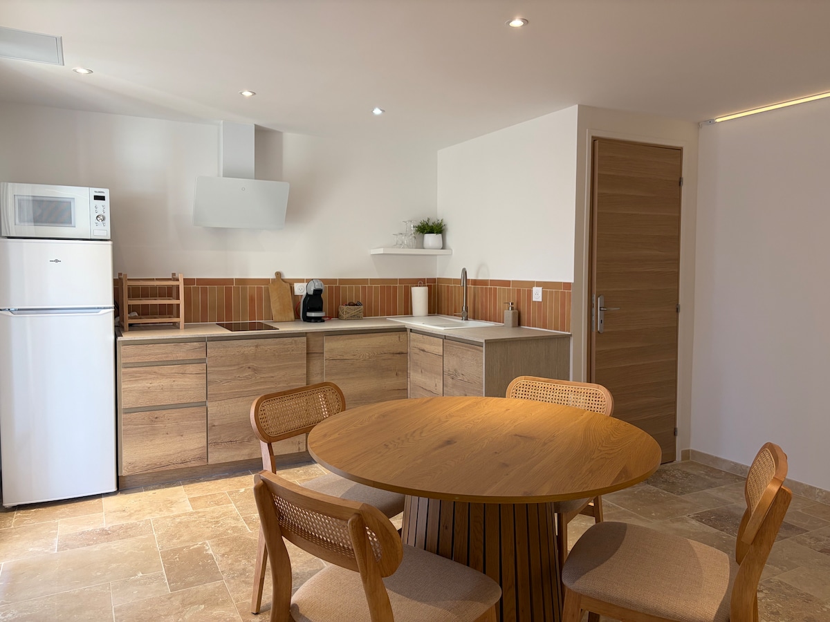 New apartment located on the ground floor of a one-storey house, just a 3-minute walk from the centre of the village of Aups. Ideal for a relaxing stay for two, it has an original round bedroom, a bathroom with a double spa bath, a fully equipped kitchen and a comfortable living area. You will also enjoy a terrace and private parking. Ideal for a relaxing getaway for two. Accommodation located 20 minutes from the Verdon Gorges.