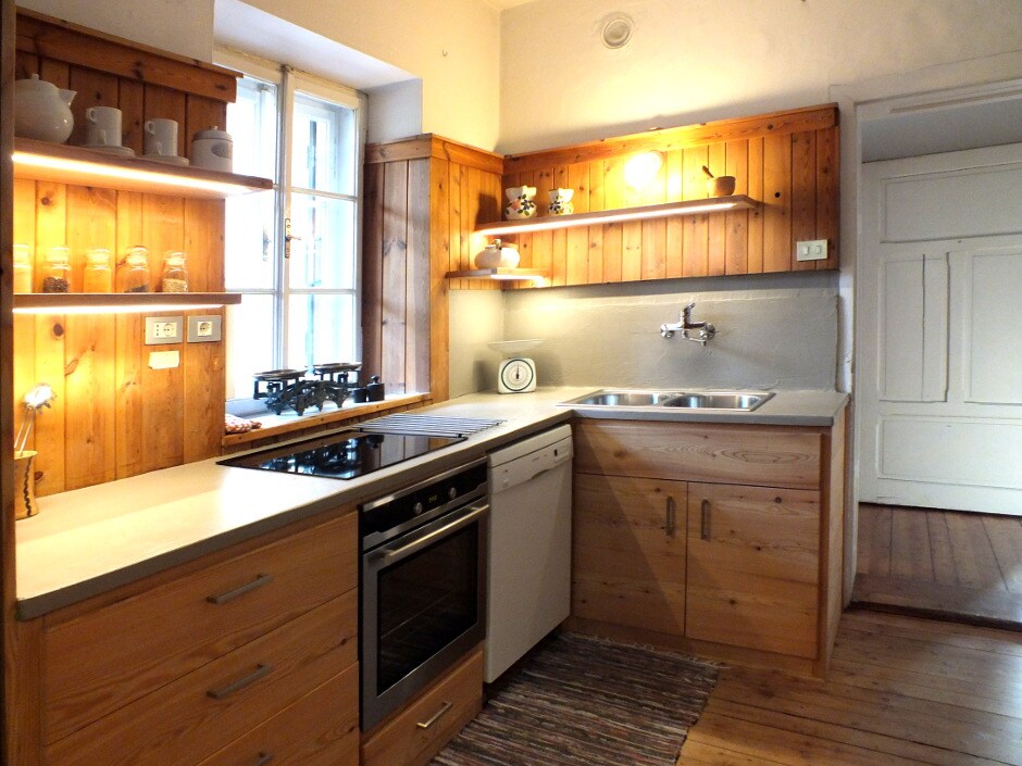 The apartment “Antelao” of about 100 square meters is located on the first floor of Villa Glauber and consists of three bedrooms, a kitchen with balcony and two bathrooms. The veranda, on the other hand, thanks to its conveniences, offers a wonderful view of the garden and the Nine Peaks and above all a relaxing atmosphere in every season of the year. Characteristic majolica stoves and the view of the woods make it unique.