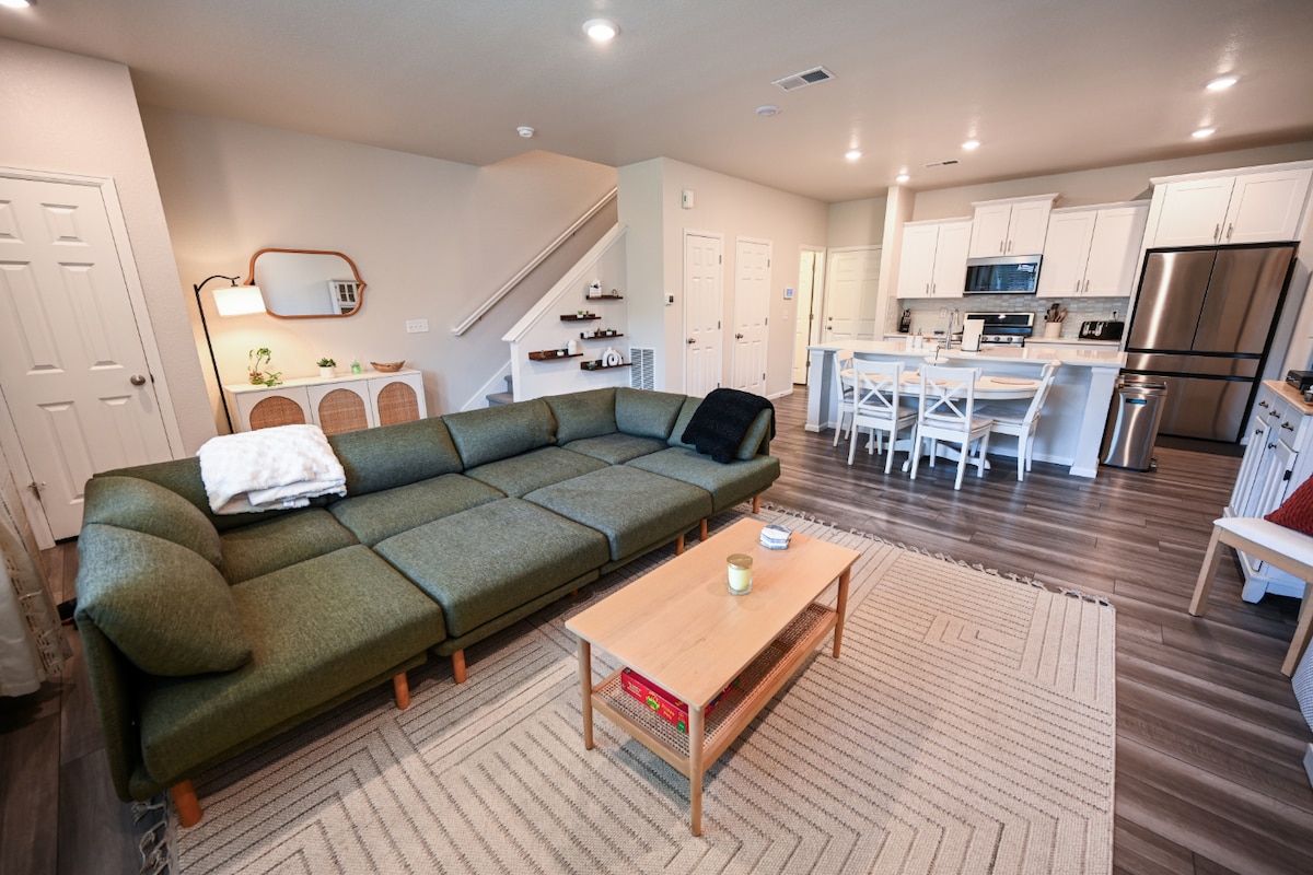 Discover Aurora's charm in our modern townhouse. Get cozy in our living room, complete with a top-tier Samsung TV, and all your streaming favorites. Start your day with a fresh brew and show off your culinary skills in our well-equipped kitchen. As evening falls, warm up by the wood-burning fireplace in the bedroom. When it's time for some fresh Colorado air, step onto our sunny private patio. And when the city calls, downtown Denver and the trendy Dairy Block are just a 20-minute drive away.