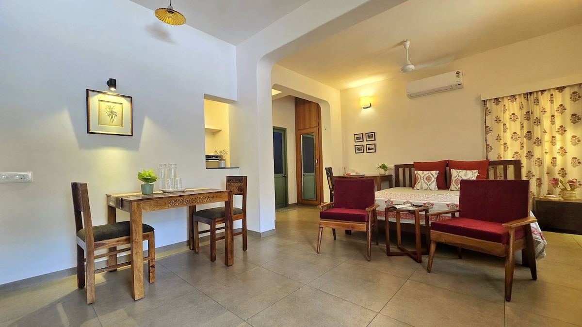 Welcome to Oorvi, a charming getaway! Nestled right in between Auroville and Pondicherry, this cozy one-bedroom apartment offers a perfect blend of comfort and nature, yet close to local amenities. Every detail in this space has been thoughtfully curated to create a warm and serene atmosphere. Wake up to the sounds of birdsong and life of the nearby village. Ideal for solo travelers, couples, or anyone looking for a unwinding and purposeful stay!
