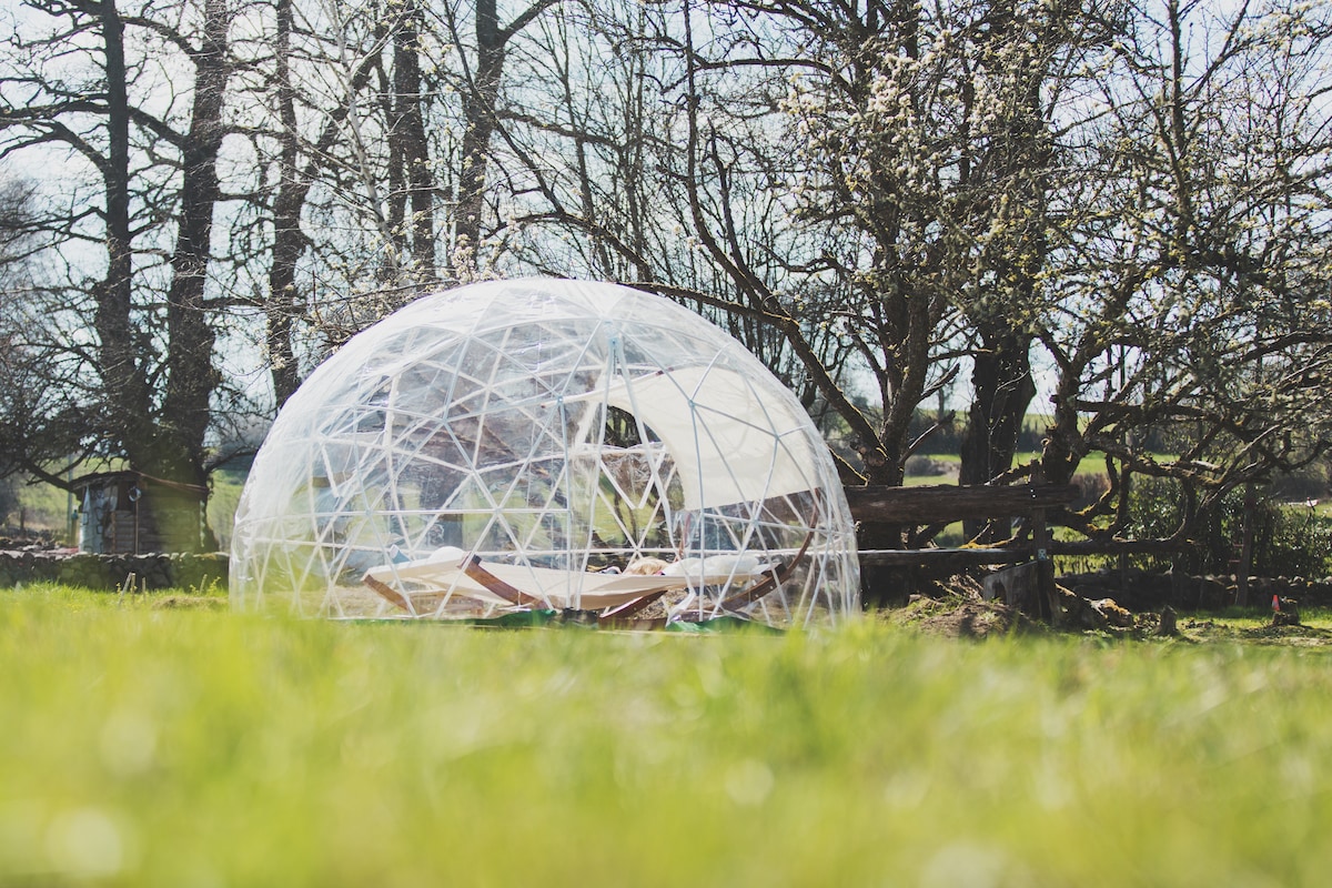Sleep under the stars, admire the Milky Way A transparent bubble in the middle of the countryside with all the comforts, shower, toilet. A magical night You will have the option to relax in our Nordic bath (€30) and take a short tour of the sauna (€20). Guests can relax on the sun loungers on the sheltered terrace Sun, rain, wind, clouds… no matter what you will be transported by silence, nature, tranquility, the unusual!