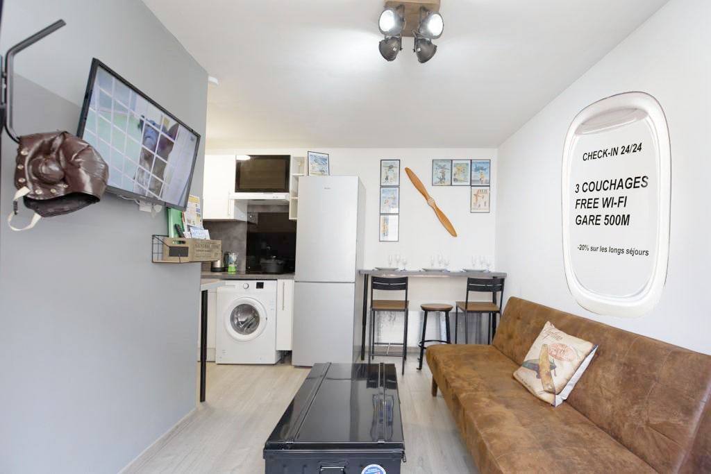 Experience staying in the heart of Etampes. In a charming 35 m2 studio, close to the train station and shops. With its modern decor and amenities including oven, TV (wifi netflix), senseo coffee machine, dishwasher, fridge, washing machine, dryer, hair dryer. It offers all the comforts you need. Just put down your bags and let yourself be carried away by the sweetness of life in a city with medieval allures and country charm.