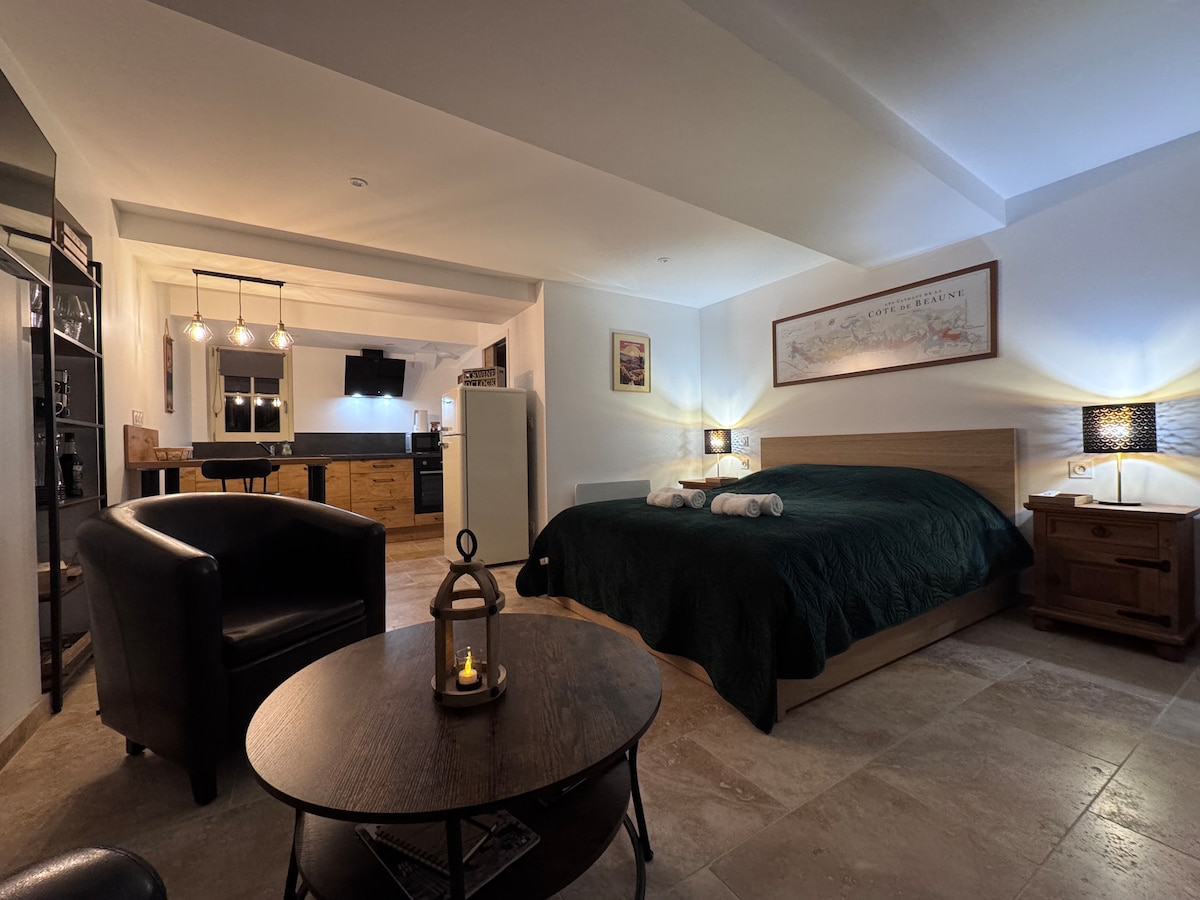 Come and discover the charm of Burgundy. Located in the heart of Pommard and its vineyard, Le Petit Métayer is a comfortable studio for two people, a quiet and relaxing place. It is located on the first floor of an old building. In the center of Pommard, the old stones and narrow streets of this Burgundian village give it all its charm. The village has several shops. Free parking in the church square with charging stations for electric cars.