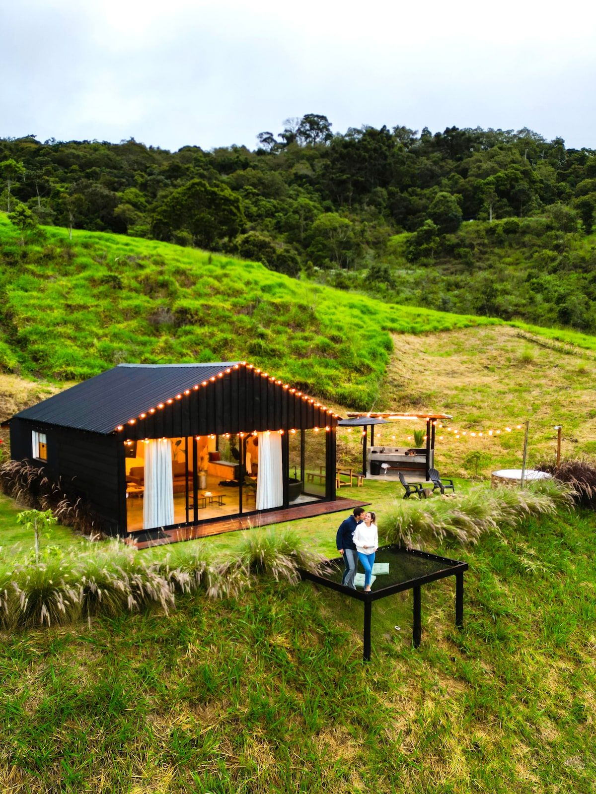 Discover the magic of Serra da Mantiqueira in this cabin designed so that you can watch the sunrise without leaving your bed. Come and relax in our heated spa, watch the stars in the hammock and swing. The cabin has an integrated bedroom with a cozy queen-size bed. In the living room/kitchen, a super comfortable futon accommodates two more guests, making it a family-friendly experience. The property also has trails and small waterfalls. This site is a unique getaway.