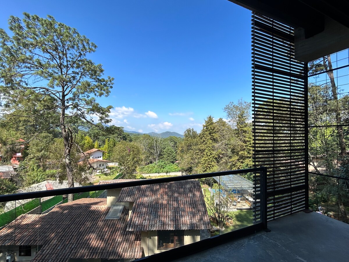 Welcome to a retreat designed for a person, couple or family looking for an intimate and cozy escape in the heart of Avandaro. A space that feels like home, with exceptional warmth and comfort, everything you need without leaving home. Located on the first floor, the apartment offers a privileged view of the Valle de Bravo landscape.