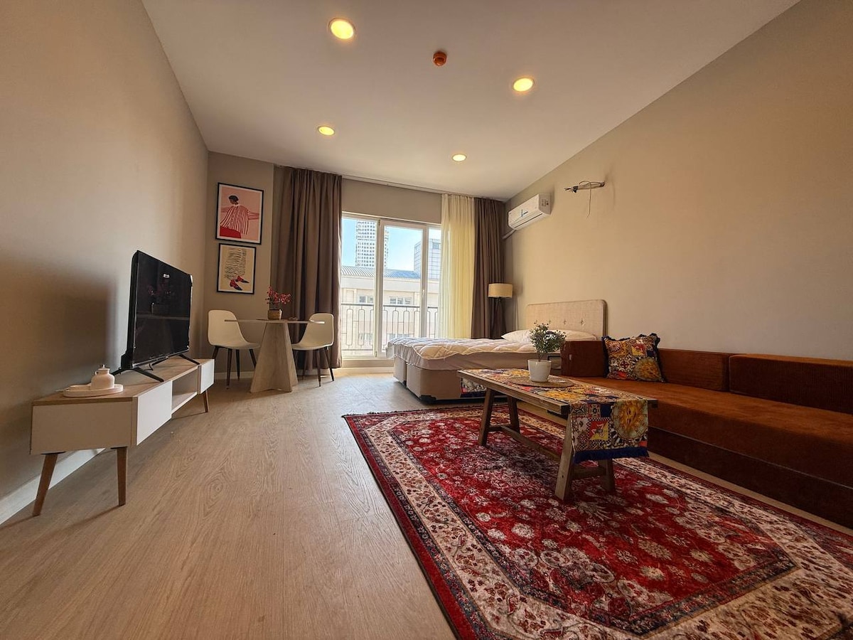 Welcome to our modern and comfortable studio apartment, designed for a relaxing stay. The space features a cozy bed, stylish living area, dining table, and a fully equipped kitchen for your convenience. The modern bathroom is clean and spacious. Enjoy fresh air on the private balcony. The apartment also includes fast Wi-Fi, air conditioning, Smart TV, and a washing machine to make your stay comfortable and enjoyable.