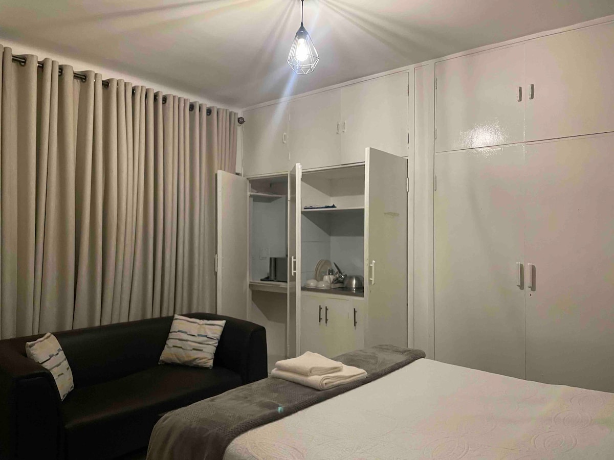 Recently renovated Studio Apartment, on the Ground Floor which is in a peaceful and centrally-located place. It is 2km from the CBD, Montagu Shopping Centre is 700m away, and Clinics and hospitals are less than 500m away. Public Transport is within walking distance and taxis are within reach, with 5 minutes waiting time from booking.
