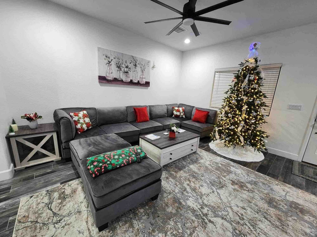 Welcome to The Palms Bullhead! Our stunning home boasts a modern-contemporary design, ensuring an unforgettable getaway experience. You'll find yourself just a 15-minute drive from Laughlin, 5 minutes from the Colorado River, and 5 min drive to Rotary sports park. Even Walmart is just a 1-minute drive away, and if you're up for a scenic adventure, the Grand Canyon West skywalk awaits you within a 2-hour drive. Discounts for stays 3 days or more. Check us out!🌴