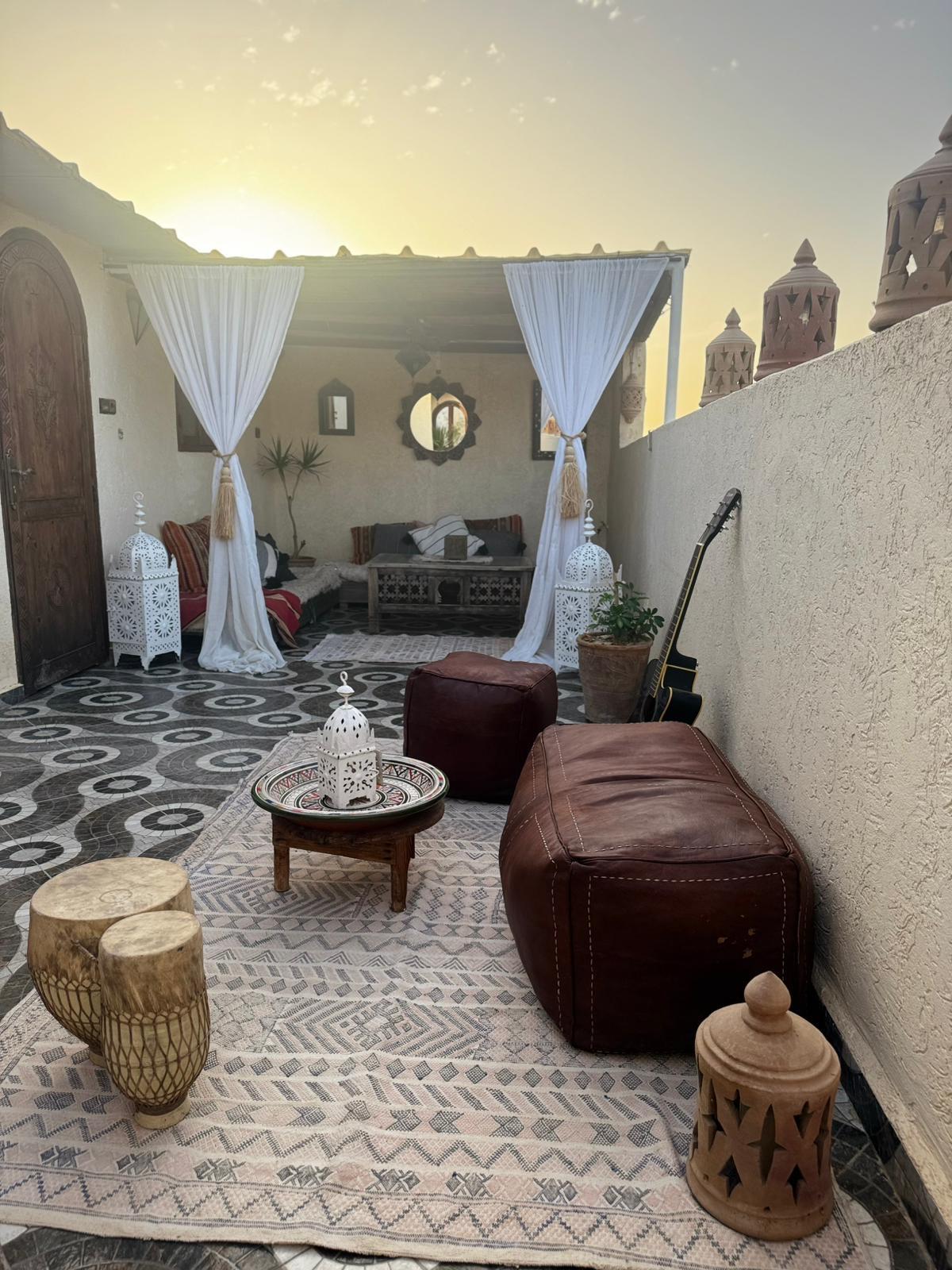 Discover the authentic charm of our Berber suite, an open space designed for your comfort and relaxation. It includes: • A double bed for peaceful nights, • Private toilet and shower for your privacy, • A small kitchen with kitchenette • A relaxation area to enjoy tea or coffee. All with a spectacular view of the sea, perfect for moments of relaxation and memories. Fall in love with the magical atmosphere of this Berber suite