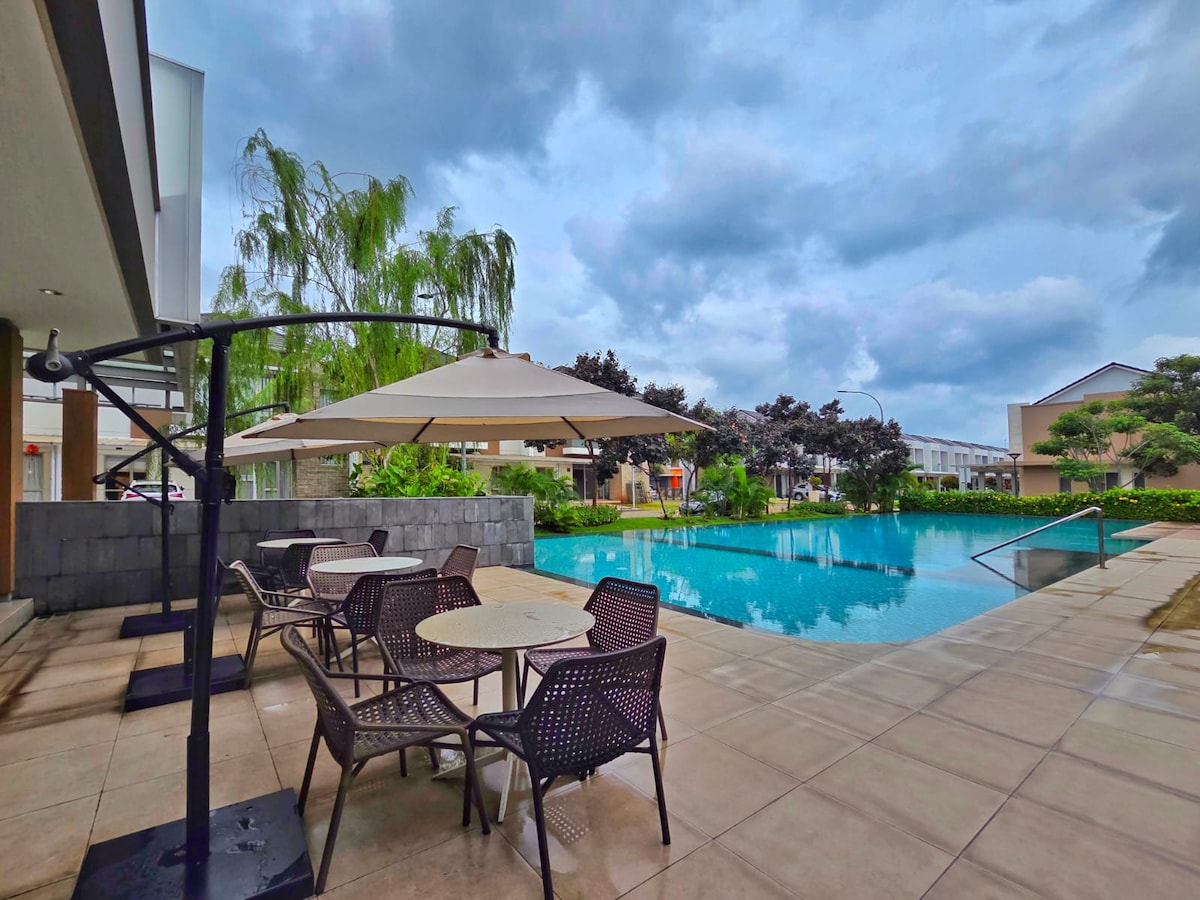 Located right in front of the famous Orange Groves, where you can easily find scrumptious brunch, while your kids enjoying the free playground with so many activities in weekend, and also a supermarket for your daily grocery needs. 30 minutes from Soekarno Hatta Airport, perfect for transit stay. Free Parking. Our cluster has free Swimming Pool, Gym and Kids Playground, right beside the jogging area alongside the lake.