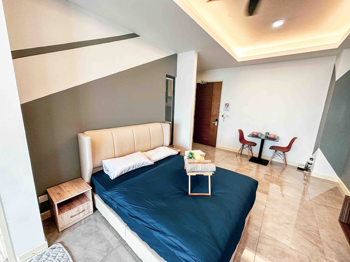—Studio— Imperio Residence -Cosy Room with bathroom and Bathtub -Adjustable cold/hot water -Queen bed x1 -Pillow x2 -Wardrobe -Make up table with mirror -Air-Conditioned -High Speed Wifi -YouTube & Netflix -Sea View -High Floor *Paid parking HOURLY Monday-Thursday RM3, subsequent RM1 Friday-Sunday RM4, subsequent RM1 Late check out rm40 per hour Card lost rm200 Key broken rm50