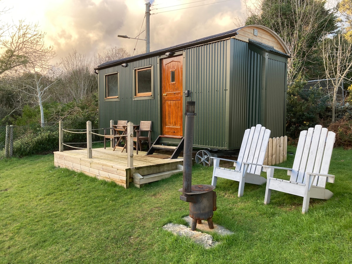 Our cute and cosy shepherd's hut gives you the best of both worlds. Hidden in a green oasis next to a waterfall and near the beach, the hut is just a short walk from Laxey's pubs, restaurants and shops. Our hut has a full size double bed with a proper premium mattress, a bathroom with all the facilities and a fully equipped living area that gives cooking, eating and sitting space. Our hut is a tiny house, not a big tent- all that you need is cleverly fitted into a stylish, cosy hideaway for two.