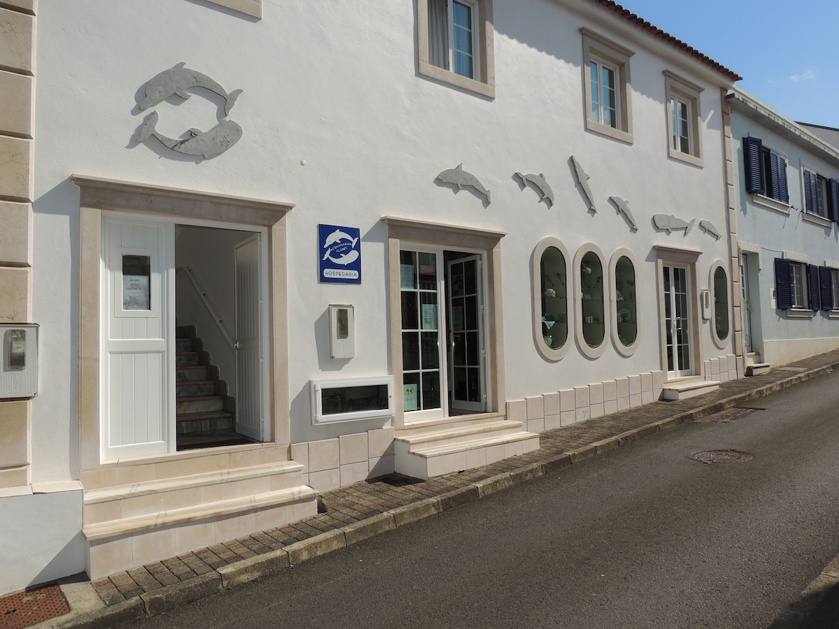 Located in the center of Santa Cruz das Flores, in Porto Velho bathing area, 20 meters from the sea and 300 meters from the airport Close to the harbor Porto das Poças, where the boats leave to Corvo.Garden with 100 square meters Rooms are spacious and large enough to uphold up to 4 beds with the option of twin or double bed and the possibilities of extra bed by request.BreakfastIt is offered in a small café Welcome offering of coffee, tea, water and handcrafted biscuits.