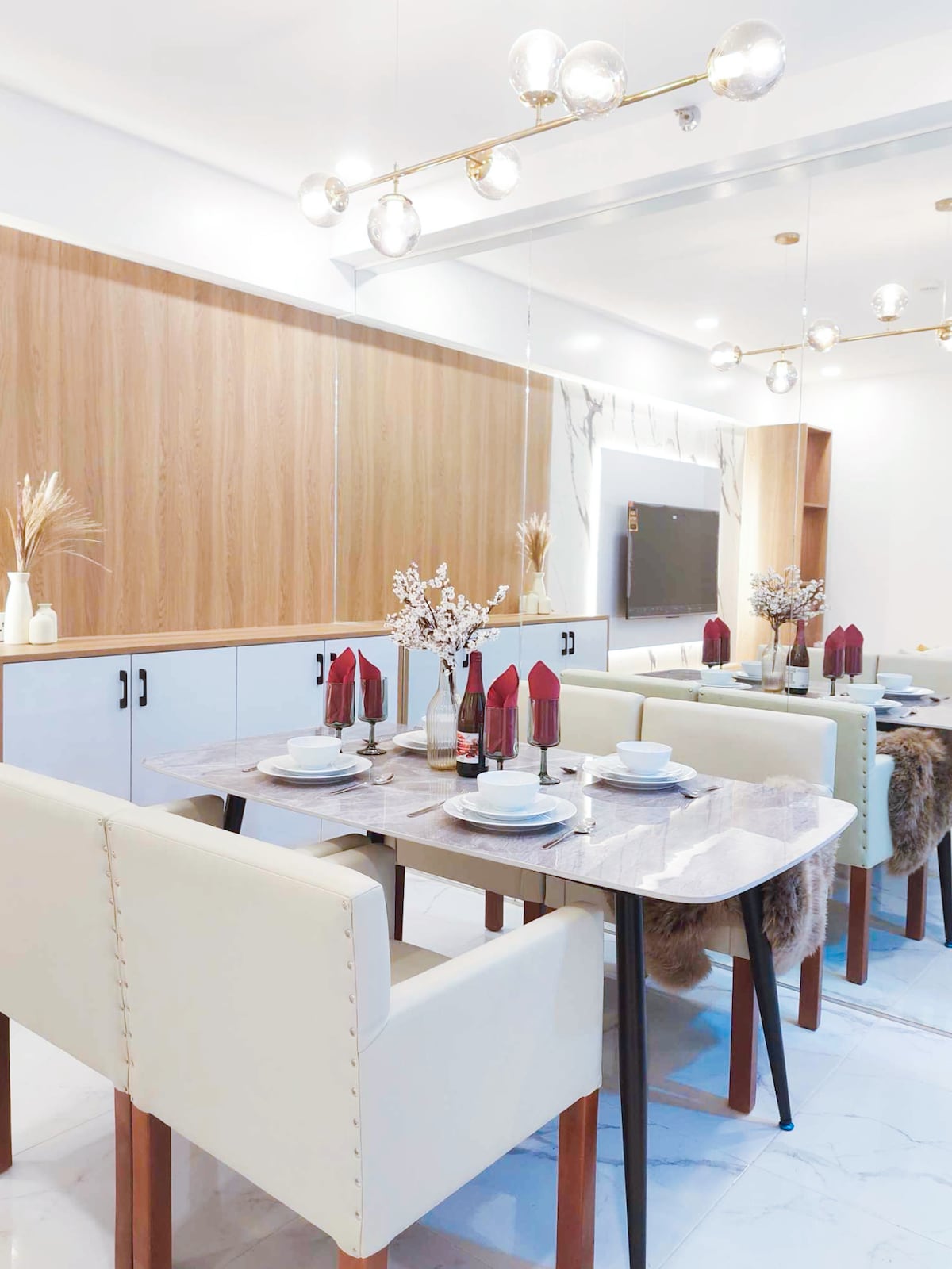 This place is a fusion of Japanese and Scandinavian design perfect for group of 6. It has 2br, 1 queen-sized bed, 1 convertible sofa bed, and a double deck. The living room has a 55-inch TV, board games like chess and Uno, and sungka. The fully-equipped kitchen provides home-like experience. It likewise has a bar table and a bar stool, and a balcony with a view of city lights. The condo unit has access to shared facilities (playground, pool, picnic area, paved jogging area), and sky lounge.