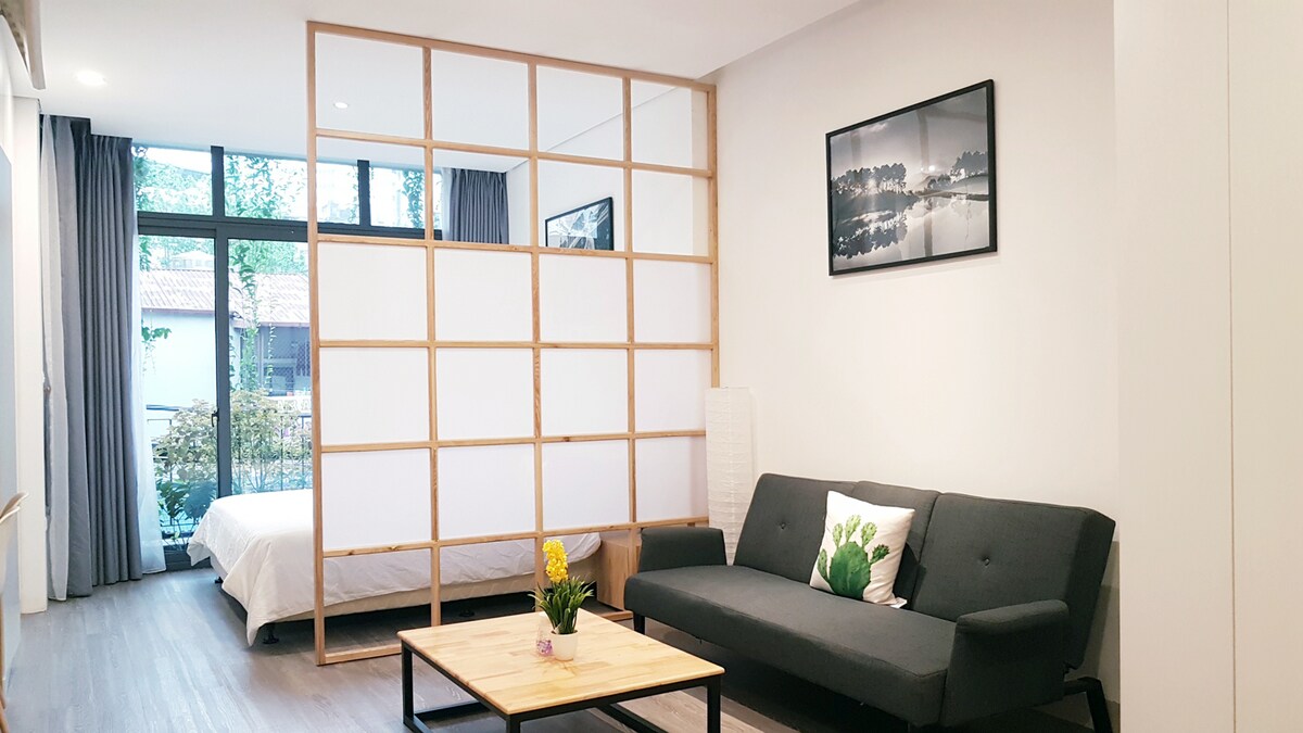 This is a delicate and gentle living space of #50m2 at Studio Truc Lac. The apartment is located near Truc Bach Lake, just a few steps to West Lake and Old Town. The highlight of this Studio is that Na has fully upgraded the interior and the windows let in lots of natural light, a suitable place for you to enjoy your private space. With modern decoration and full furniture, this Studio creates a cozy and comfortable living space.