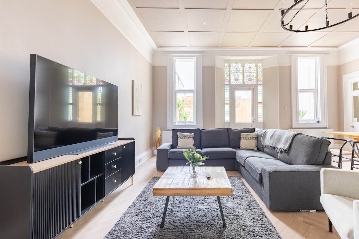 The Garden Cottage is a beautifully appointed Grade 2 listed two bedroom apartment in The Lincombes, Torquay’s most prestigious neighbourhood, known for its breathtaking views, picturesque gardens, and grand Victorian Italianate residences. Minutes from Torquay’s marina, it offers a private street entrance, unrestricted parking, and a on-site Tesla charging point. At the front is a sunny decked courtyard area. The idyllic Meadfoot Beach—a local favourite—is just a scenic 10-minute stroll away.