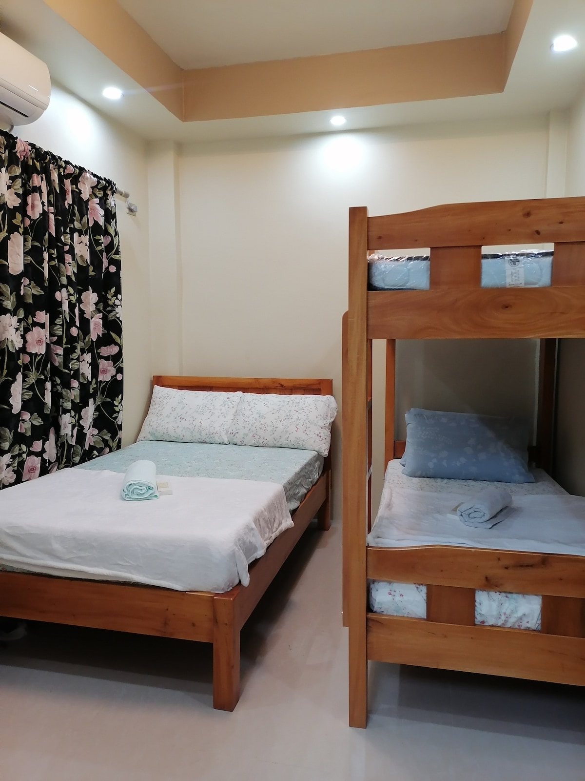 The place is an apartment beachfront property with a fully-furnished units (for transient only). The place is owned by very loving couple (Tito Jo and Tita Linda). It is being manage by Mark and Rachelle. Penthouse unit includes the following: * 1 queen size * 2 bunk beds and 2 floor mattresses * 1 bathroom * mini kitchen w/ cooking utensils * dining table and utensils * water dispenser * refrigerator * electric fan * electric kettle * sofa *Cable TV * Wifi