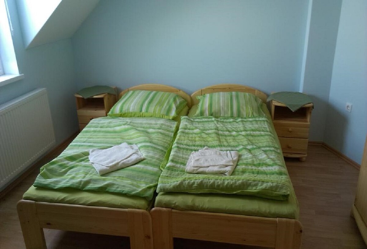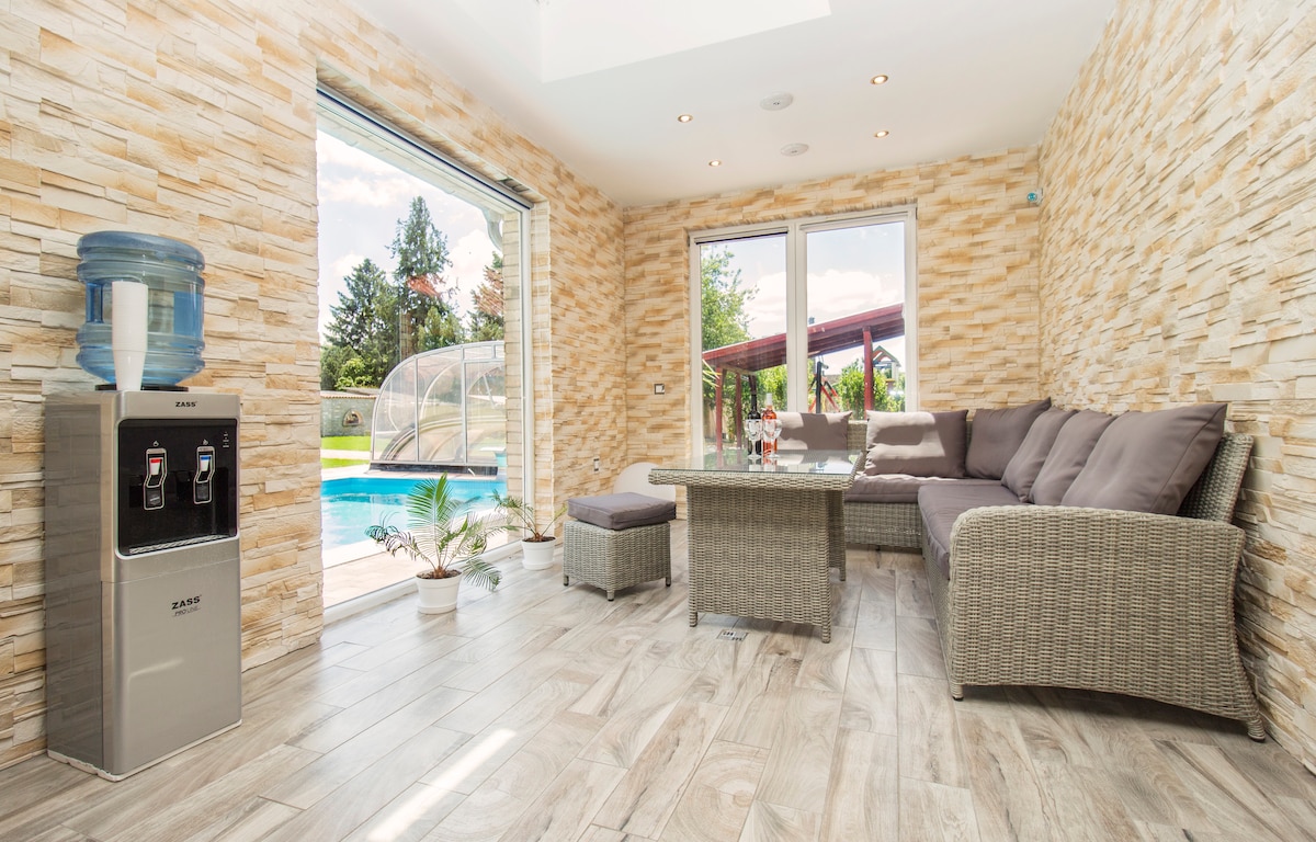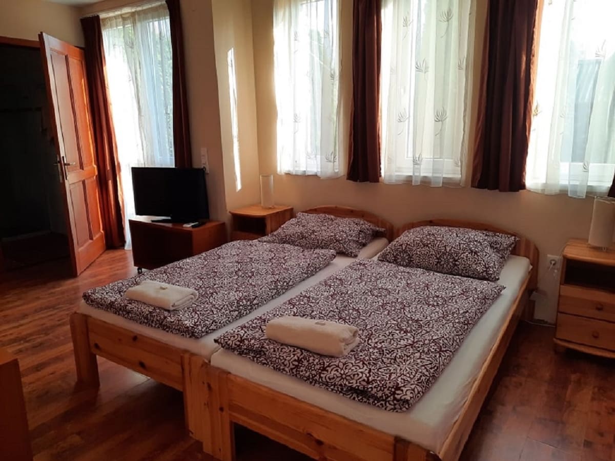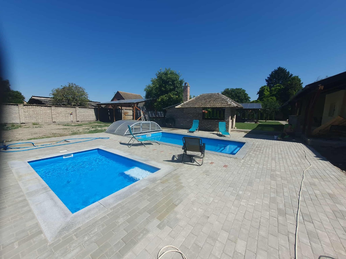Services: ▸Free WIFI ▸EVENTS ▸Wellness area (jacuzzi, steam cabin, infrared and Finnish sauna) ▸Kayak canoe, bike rental option ▸Grill and BBQ ▸Heated outdoor pool Protected ▸parking in the courtyard with a camera (free) ▸Air-conditioned rooms ▸LCD TV ▸Outdoor ping pong tables ▸Children's corner and children's toys ▸Fishing opportunities nearby Spa and thermal bath within▸ 400 meters, as well as a slide park and beach pools