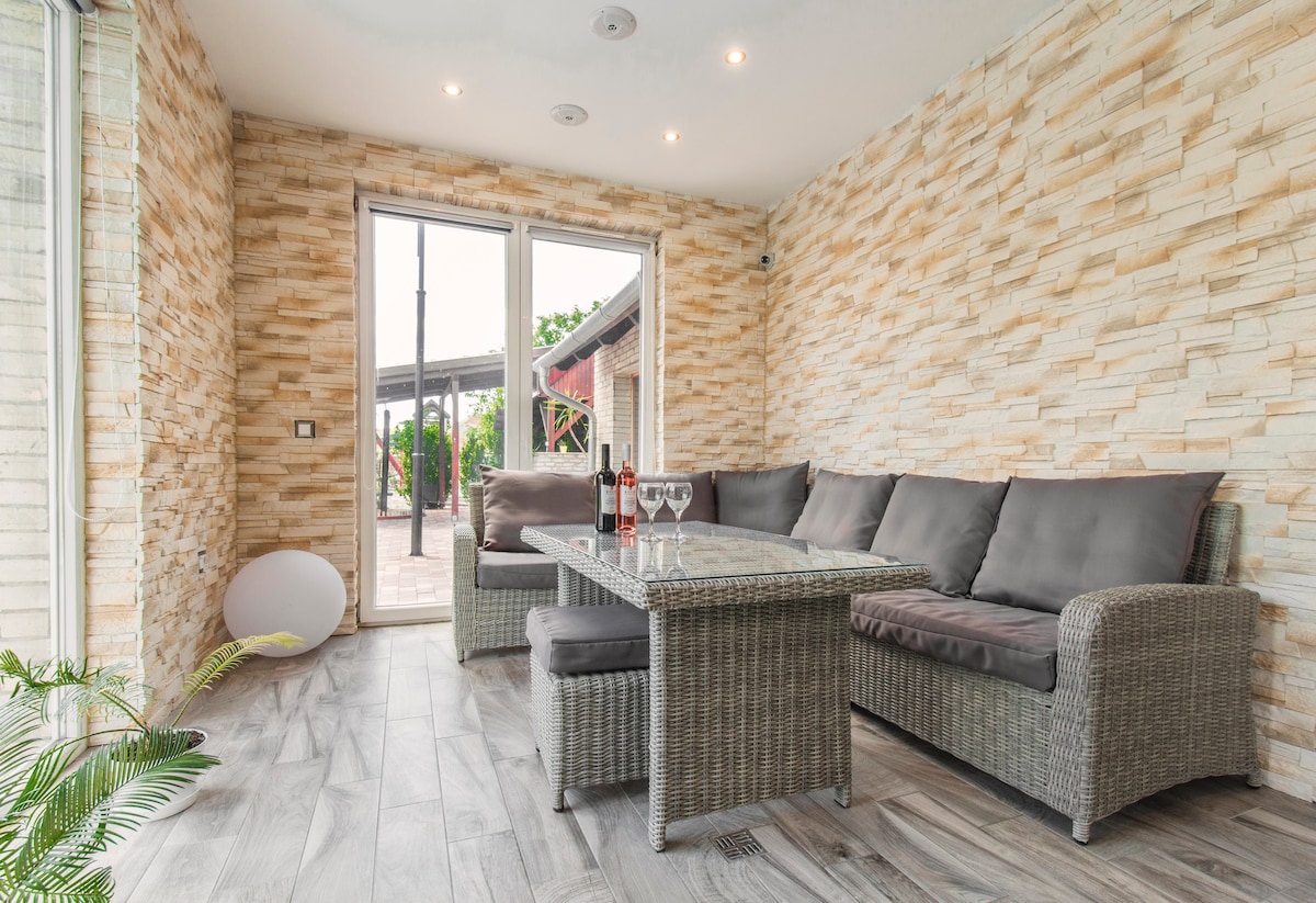 Important things to know: Available accommodation: 2 double rooms (4 persons + 1 extra bed) Facilities: ▸Free WIFI ▸Bicycle rental ▸Wellness department (jacuzzi and sauna) ▸Boat rentals ▸Outdoor pool ▸Surveillance guarded parking in the yard (free of charge) ▸Air-conditioned rooms ▸LCD television Children's▸ Corner & Children's Toys▸ Fishing nearby Spa and thermal baths within▸ 400 metres, as well as water parks and swimming pools