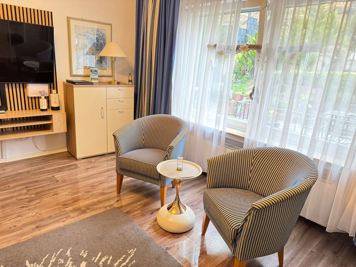 The charming apartment with approx. 32 sqm offers enough space for up to two people. The high-class and comprehensive furnishings are both aesthetic and functional. Your stay will feel like home without having to go without anything you need. Pictures are sample images for the category and show the quality of the furnishings and the interior design.