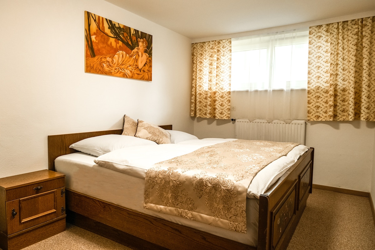 The property is located in a quiet, sunny hillside location and offers a fantastic view over Bad Hofgastein and the surrounding mountains. It is equipped with a double bed, private bathroom, kitchenette and balcony. Good public transport connection, about 700 m from the main road, train station and bus stops. The center is also within walking distance along the Gasteiner Ache in approx. 30 minutes. Ski storage is available.