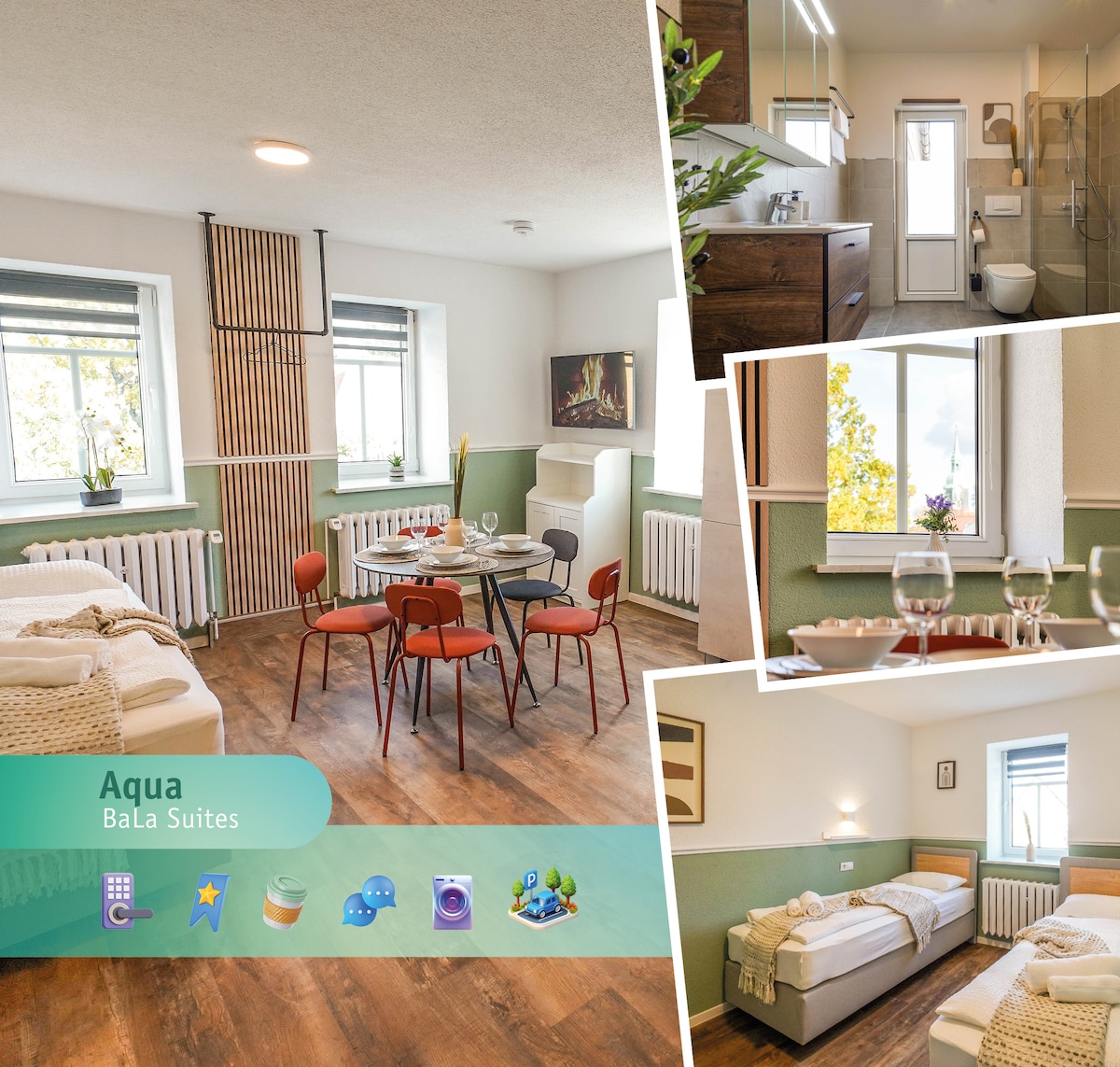 Das Apartment im Zentrum von Bad Lausick erreichen Sie über ein Treppenhaus, 24/7 per Smartlock und Key-Code. Es befindet sich im 1.Obergeschoss und ist hochwertig eingerichtet. Es verfügt über eine vollausgestattete Wohnküche mit Essbereich, Smart TV und einen 1000 MBit- Internetanschluss (WLAN), ein Badezimmer mit Wintergarten & Balkon . Ein Parkplatz ist vorhanden. Professionelle Waschmaschinen und Wäschetrockner stehen im hauseigenen Waschsalon zur Verfügung (gebührenpflichtig).