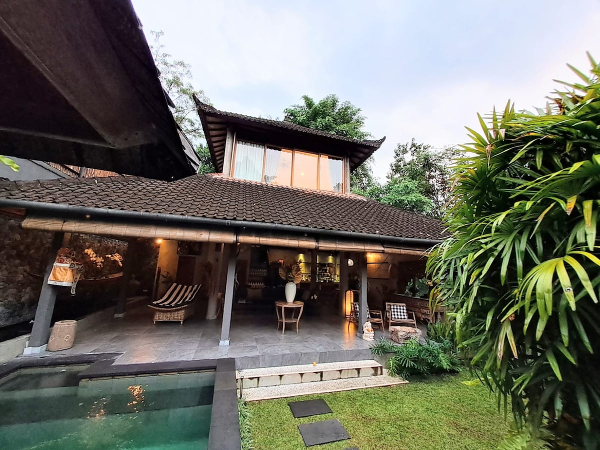 The house has rustic and industrial mood. The wall is a cement expose look. The iron glass doors and windows to ensure the jungle views seen from most part of the house. A cool and rustic lighting element are nicely installed. The furniture are a mainly made of recycled teakwood. A big open space for kitchen, dining and living. Daily breakfast is included. A good size infinity swimming pool overlooking beautiful jungle view. Chillout at this unique and tranquil jungle getaway.