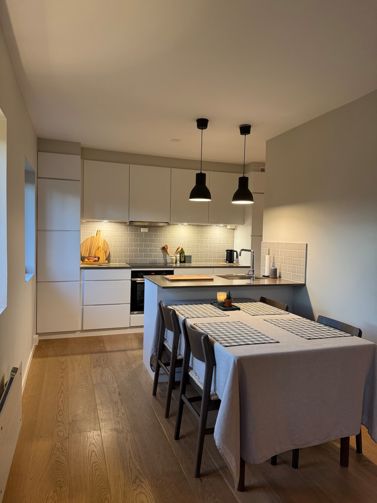 Unwind in this peaceful retreat just 10min walk from Lysaker station (9min train/ferry to Oslo Center). Enjoy beaches, hiking trails, and building's sea-view terrace. Features include sunny balcony with grill, dedicated office space, cinema screen 98" inch and a 75" screen on bedroom with Apple TV, premium audio, and high-speed fiber internet. Supermarket in building and nearby sauna complete this perfect blend of urban convenience and natural escape.