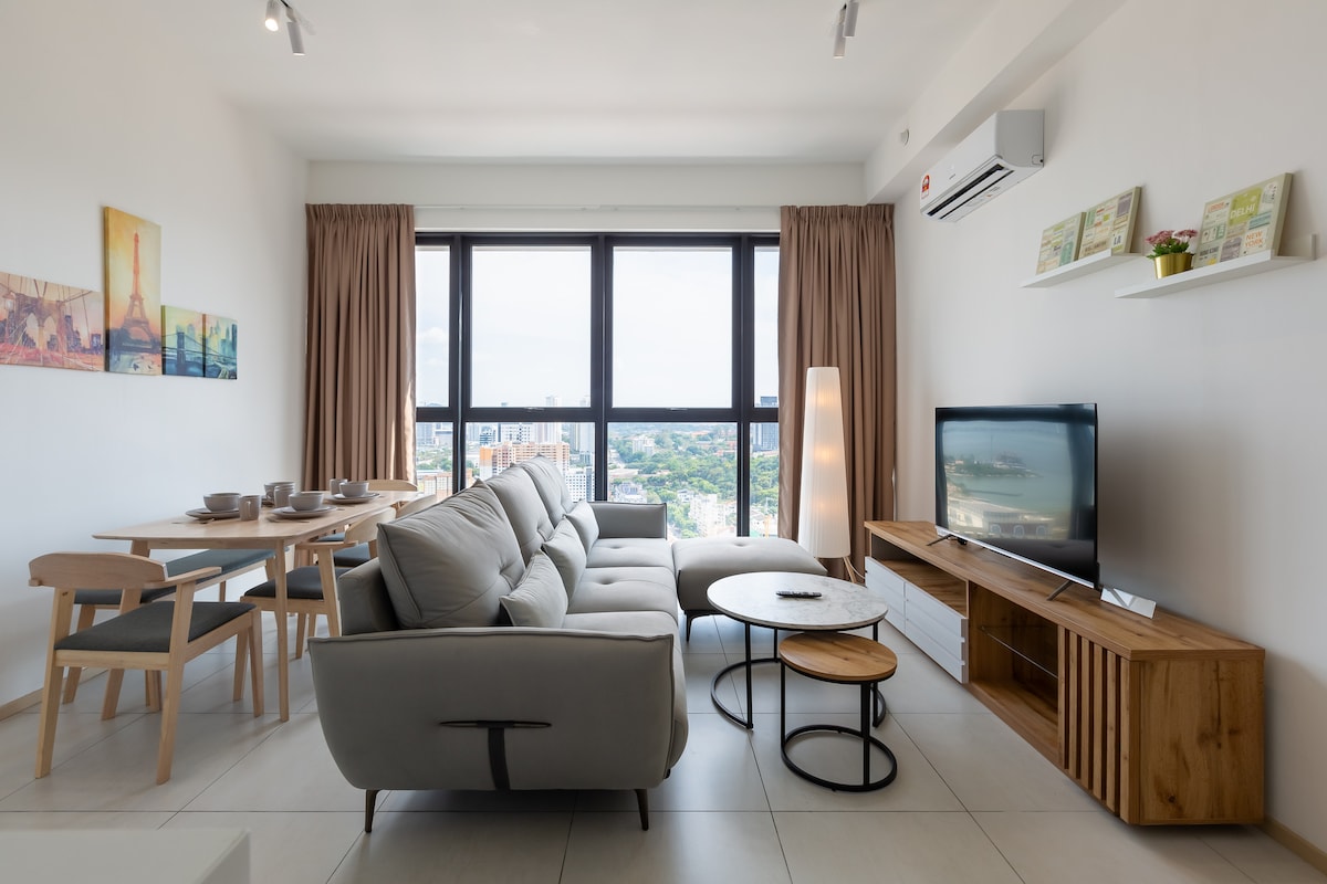 The first-ever homestay in Penang with a massage chair and SMEG Fridge. A cozy 2-bedroom condo in Urban Suites, nestled amongst greenery in the bustling heart of Georgetown. Its strategic location with local shops and restaurants is just moments away. Multiple access routes and walking distance to banks, markets, food courts & etc. State-of-the-art facilities on level 42, offer you a bird's eye view of Penang's architectural marvel, the Penang Bridge.