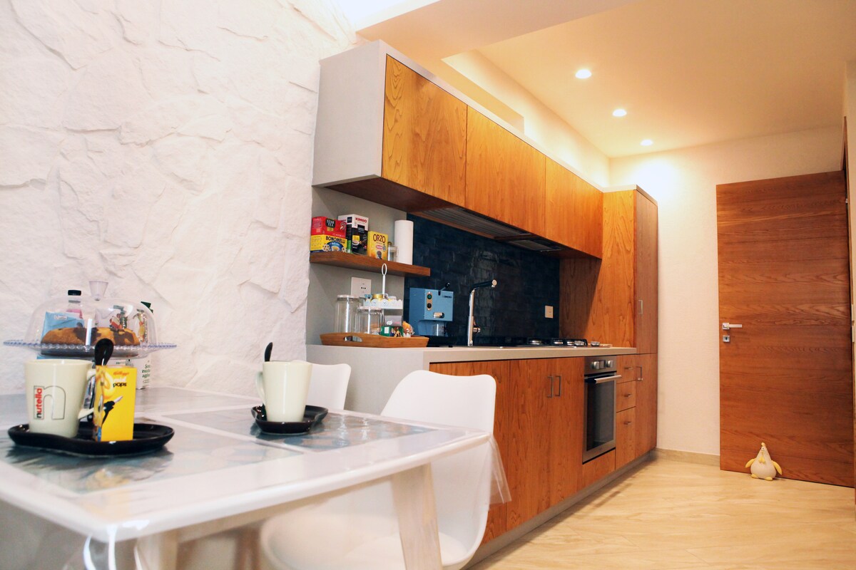 Cozy and bright apartment, perfect for couples, solo travelers, or anyone who wants to relax in a quiet and comfortable environment. Spacious bedroom with natural light and private bathtub in the room for moments of pure relaxation Fully equipped kitchen for cooking at home: stove, refrigerator, dishes and coffee machine Modern bathroom with shower, fresh towels and basic products Wi-Fi, hairdryer, sheets, heating/air conditioning