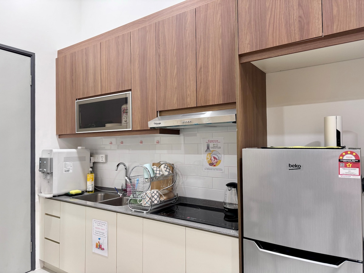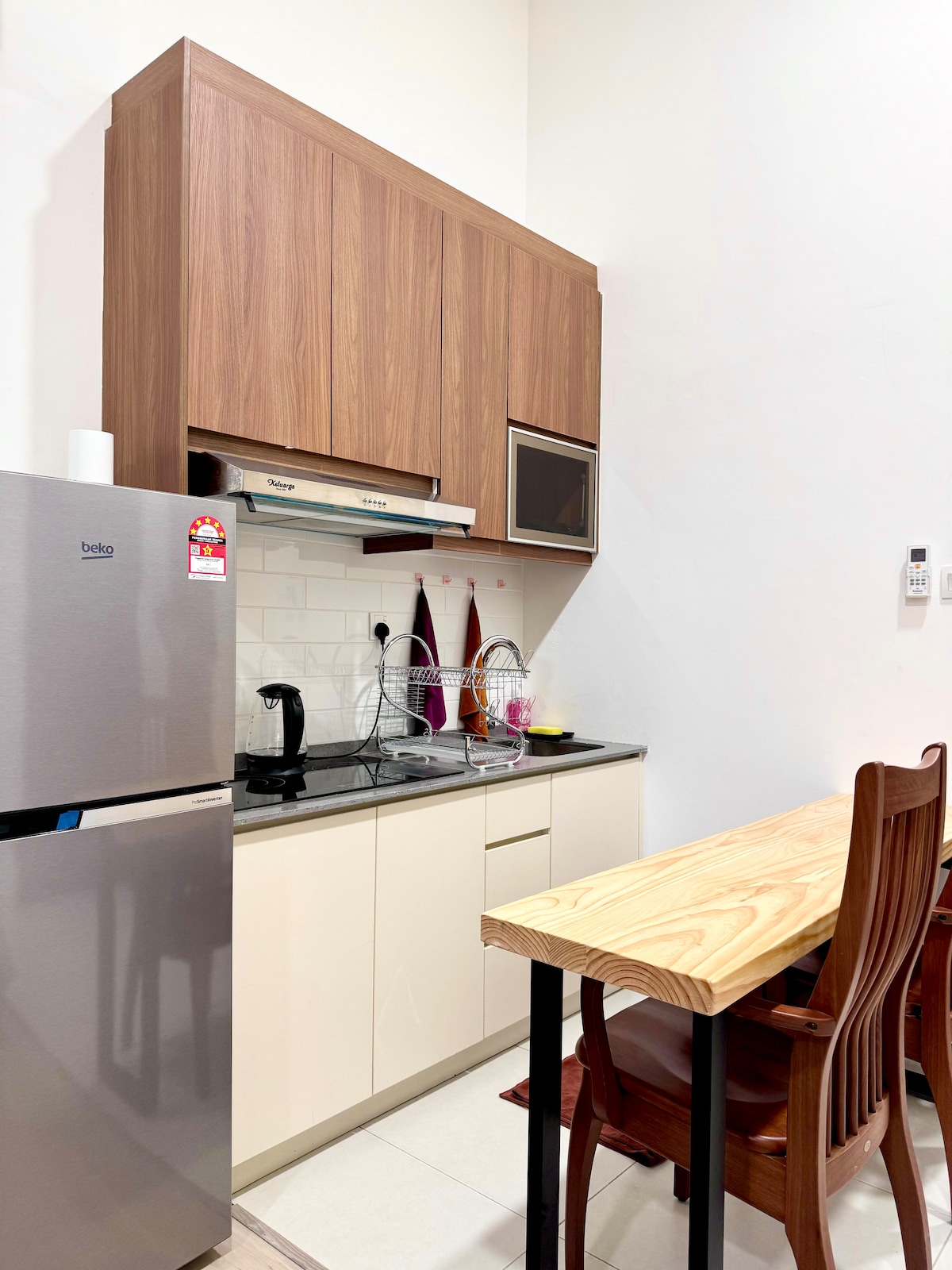 Experience stylish urban living in this elegantly designed Studio, where modern comfort meets serene ambiance & city charm. Situated in a peaceful yet vibrant neighbourhood, it offers a retreat while being close to airport, malls & City Center. Ideal place to relax&recharge, enjoy the panoramic Kuching City view from your private balcony. This studio w/ kitchen can accommodate up to 3pax, perfect for couple, business traveller & family. ★ Complimentary Parking (subject to availability)&Pool
