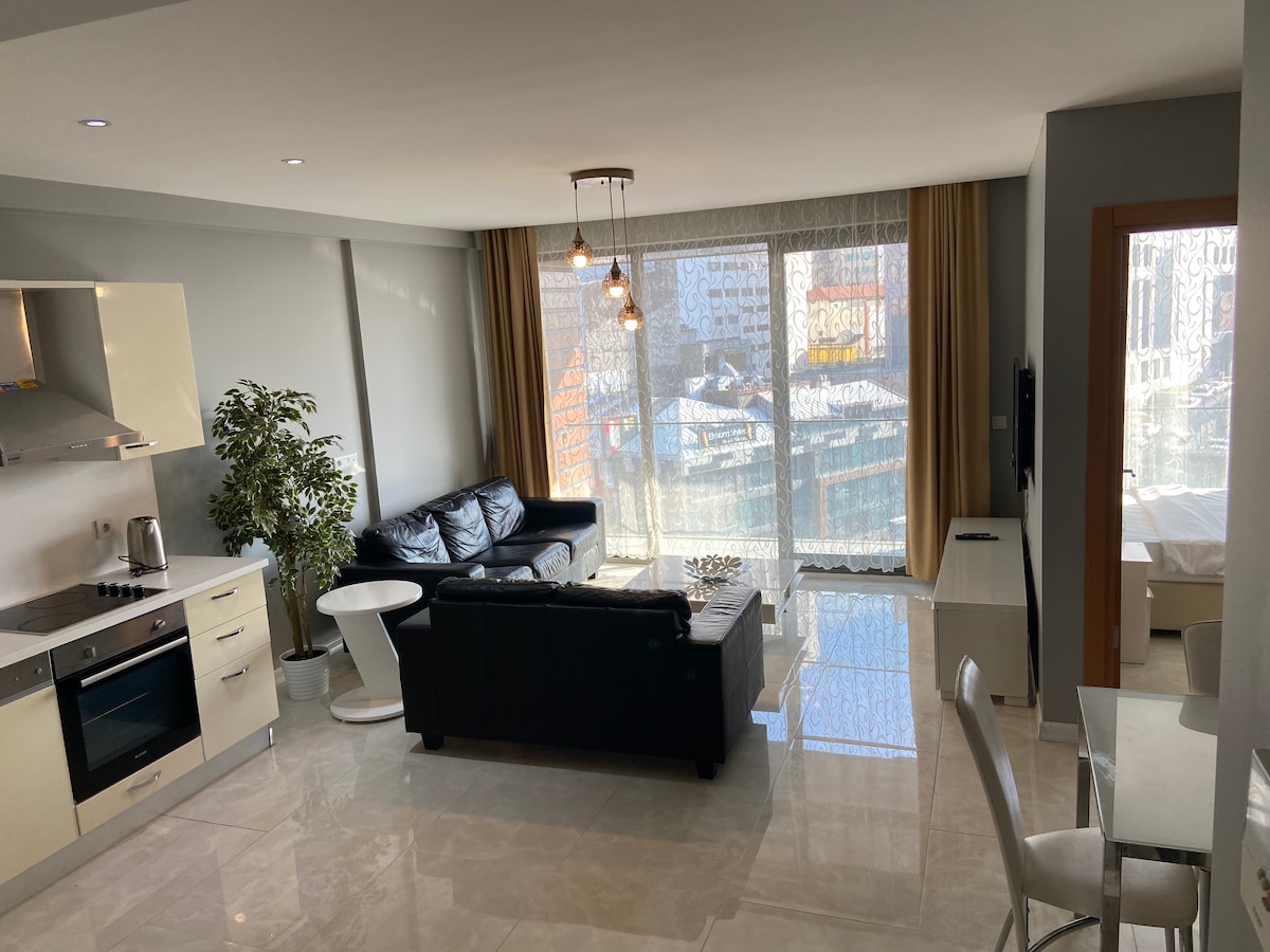Luxury suite residence. Full sea view Our customers can easily use the hotel facilities. Pool, gym, sauna are extra charge. The apartment has a separate parking lot and it is free The place is directly on the beach and has a uniquely beautiful sea view. This apartment has an extraordinary sea view where you can enjoy the sunset from your couch and bedroom The metro station is across the street and there is a taxi stand next to the residence.
