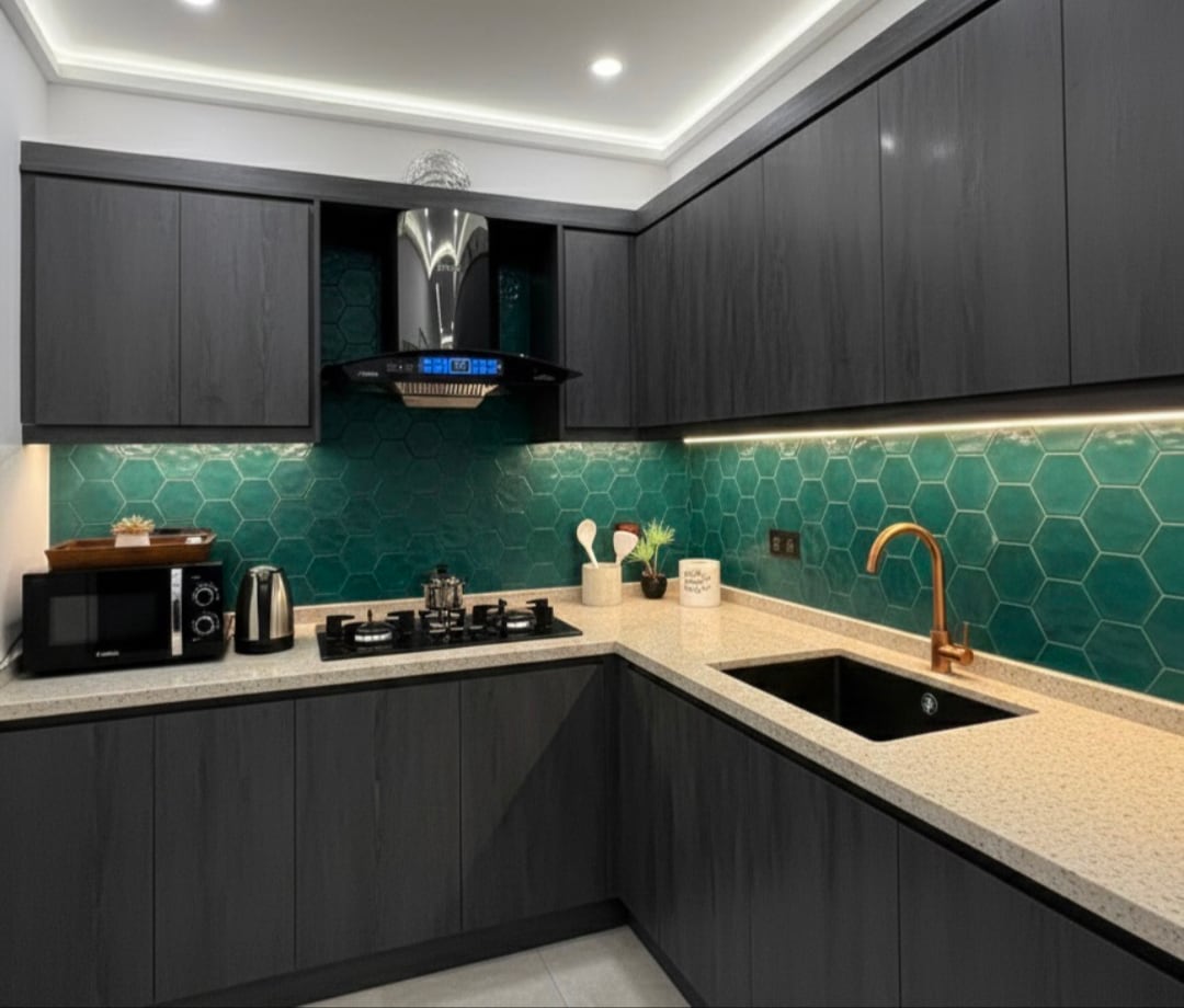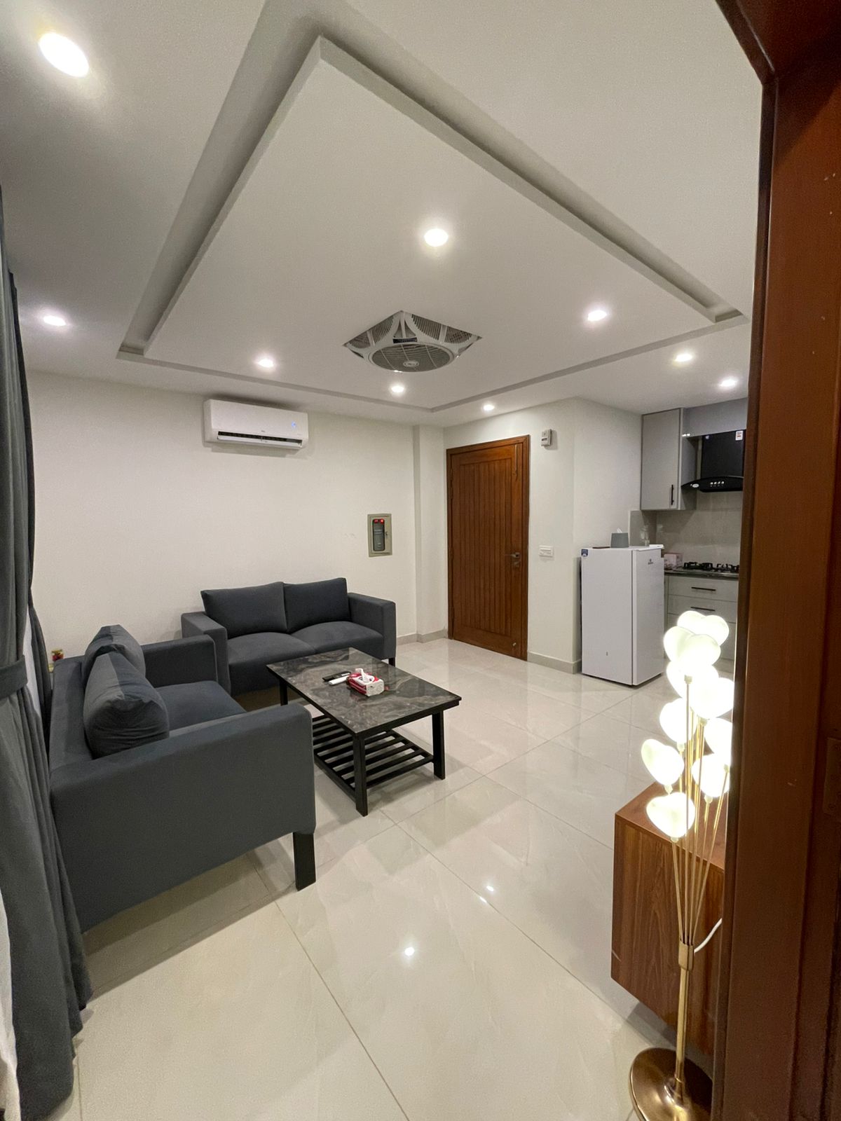 Welcome to Daró — a boutique, design-forward 1-bed apartment in the heart of Zameen Aurum, Gulberg III. Thoughtfully crafted with soft tones, modern furnishings and a calm hotel-like ambience, this space offers a private balcony, a stylish lounge with a 55” LED, a fully equipped kitchenette, fast WiFi, fresh linens, and 24/7 hot water. Ideal for married couples, business travelers, weekend escapes and long-term stays seeking comfort, convenience and a truly elevated experience in Lahore. 🌙✨