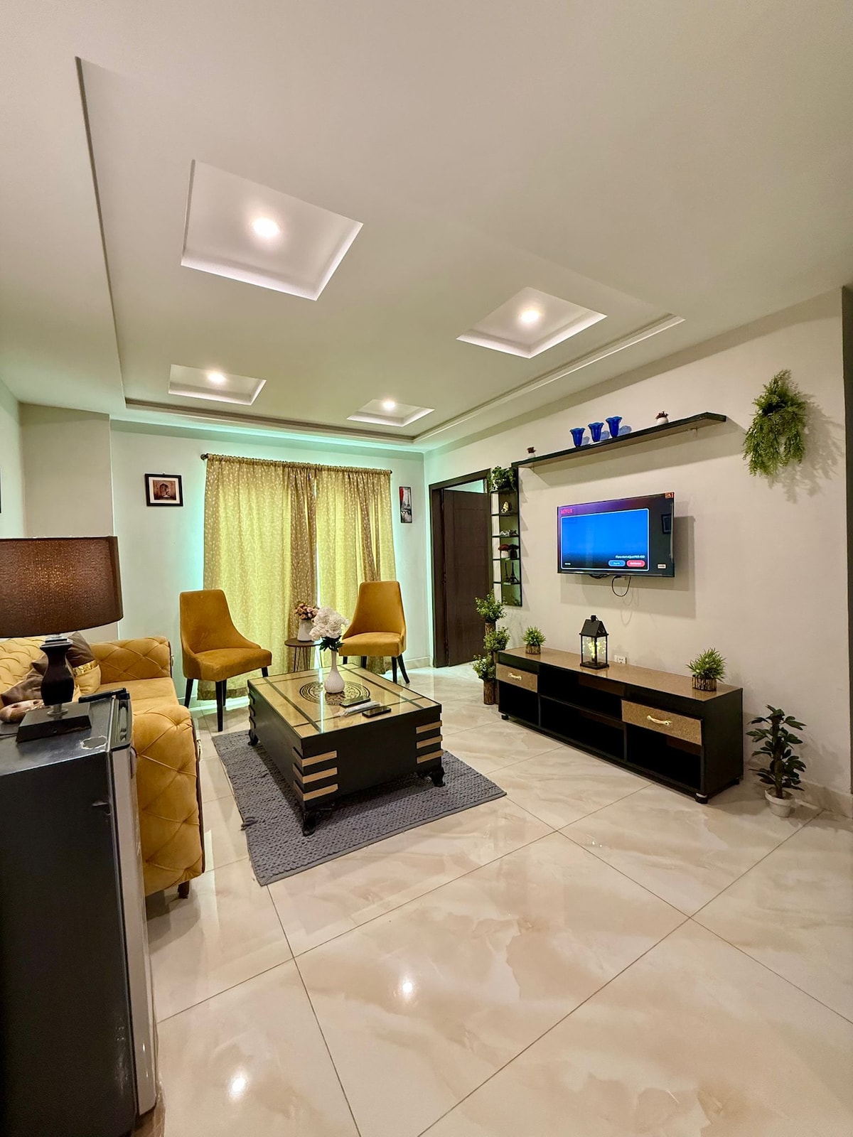 👑 Luxury 2BR Ground Floor Executive Stay in Prime Valencia Town. This royal-style home offers premium furniture, elegant drawing room, stylish living space & 75” Smart TV for a cinema experience. Kitchen fully equipped with all accessories. Private Gym and Modern gazebo. Modern bathroom with full amenities & secure garage parking. Complimentary breakfast included. 5⭐ hotel-style lunch & dinner available with professional waiter service. Ideal for families, corporate guests & long stays.