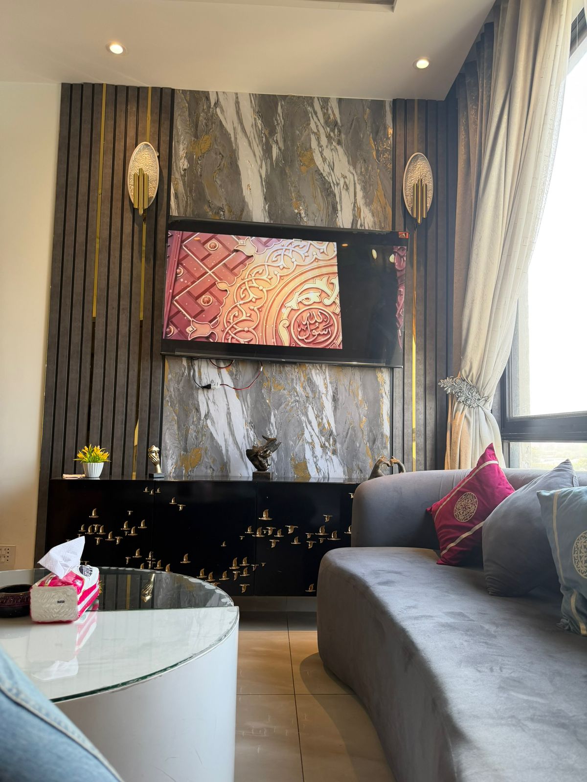 Enjoy a modern and fully furnished 1BHK apartment in Johar Town Phase 2, Lahore, conveniently located near Emporium Mall and Expo Centre. Perfect for families, business travelers, or short-term stays, this stylish apartment features elegant interiors with geometric wallpaper, warm recessed lighting, a flat-screen TV with entertainment console, AC, and high-speed WiFi. Stay comfortable with a well-equipped kitchenette, and enjoy a safe and secure building with parking available. (ON 2ND FLOOR)